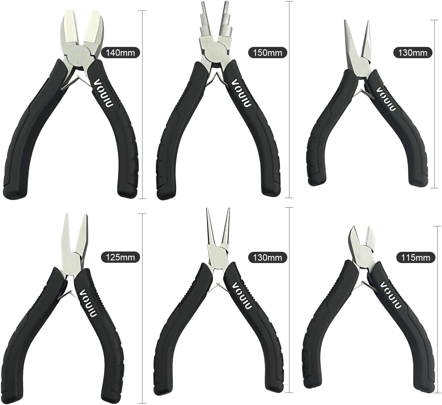 - Product inclusion : 6 step bail making pliers, nylon jaw pliers, round nose pliers, flat nose pliers, side cutter pliers,chain nose pliers