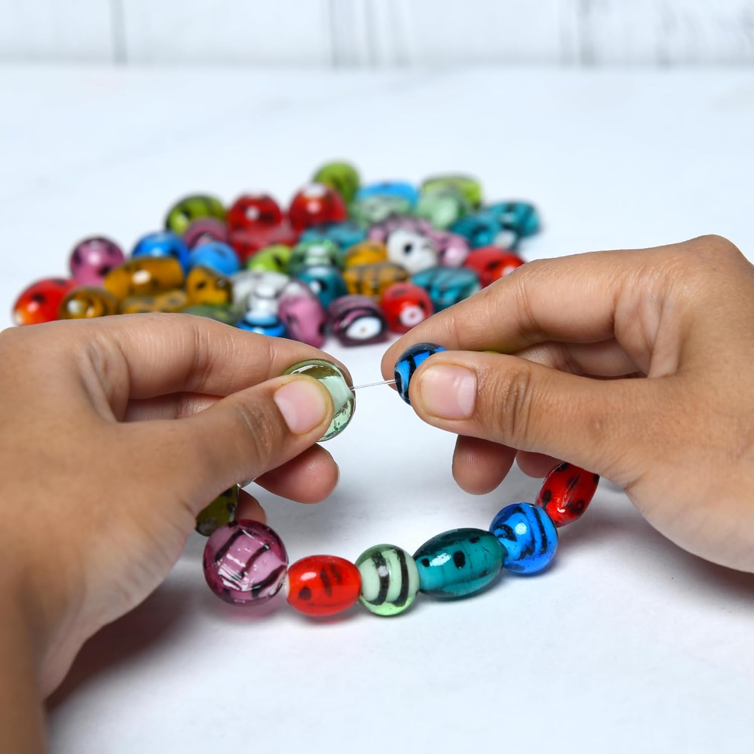 2/3 LB Bag of Assorted Glass Beads for Jewelry Making, Lampwork Murano Bead Mix for Bracelets and Necklaces, Crafting Beads Supplies Kit, Large & Small Beads (Dots + Stripe Mix)
