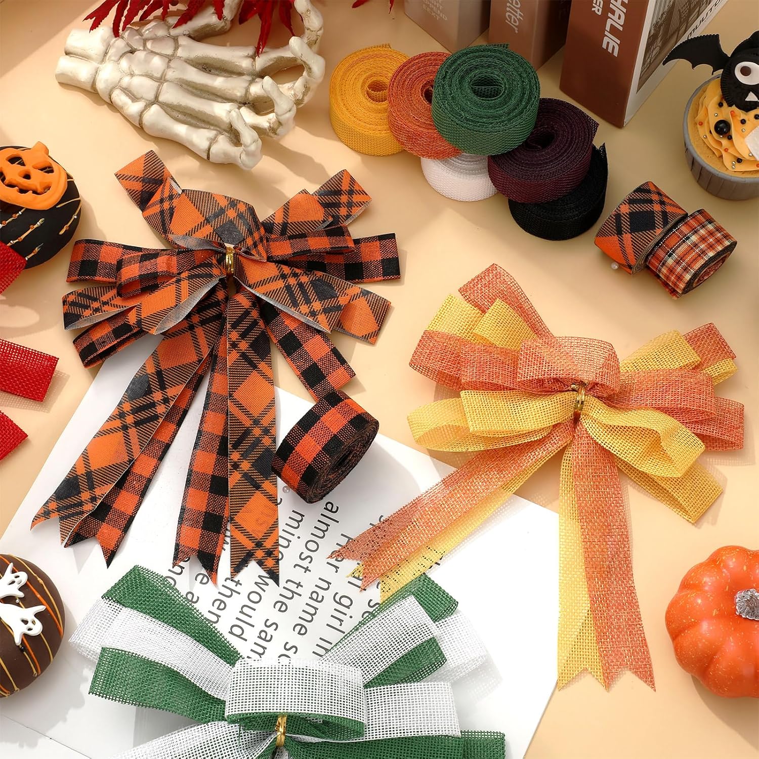 10 Rolls 50 Yard Halloween Plaid Burlap Ribbon Rolls 1 Inch Gift Wrapping Ribbon Decorative for DIY Crafts Wreath Bow Making Supplies Home Decor