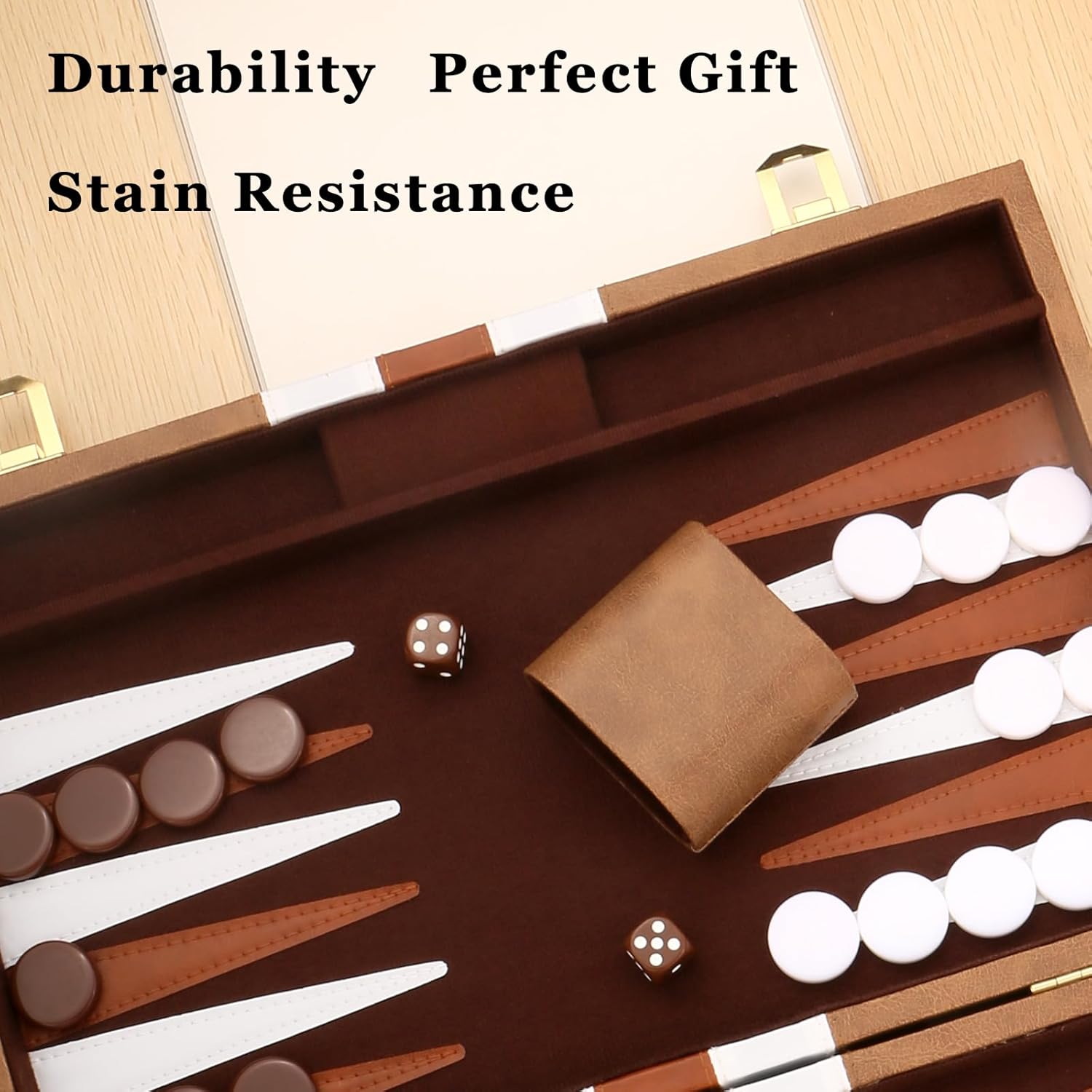 Backgammon Set - Classic Board Game with Premium Leather Case - Portable Travel Strategy Backgammon Game Set for Adults, Kids (15inch, Khaki)