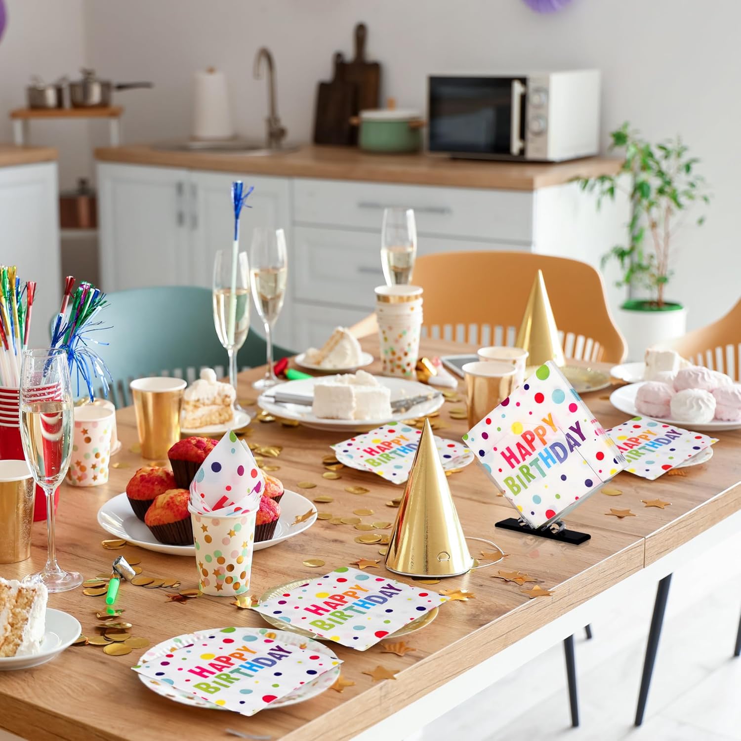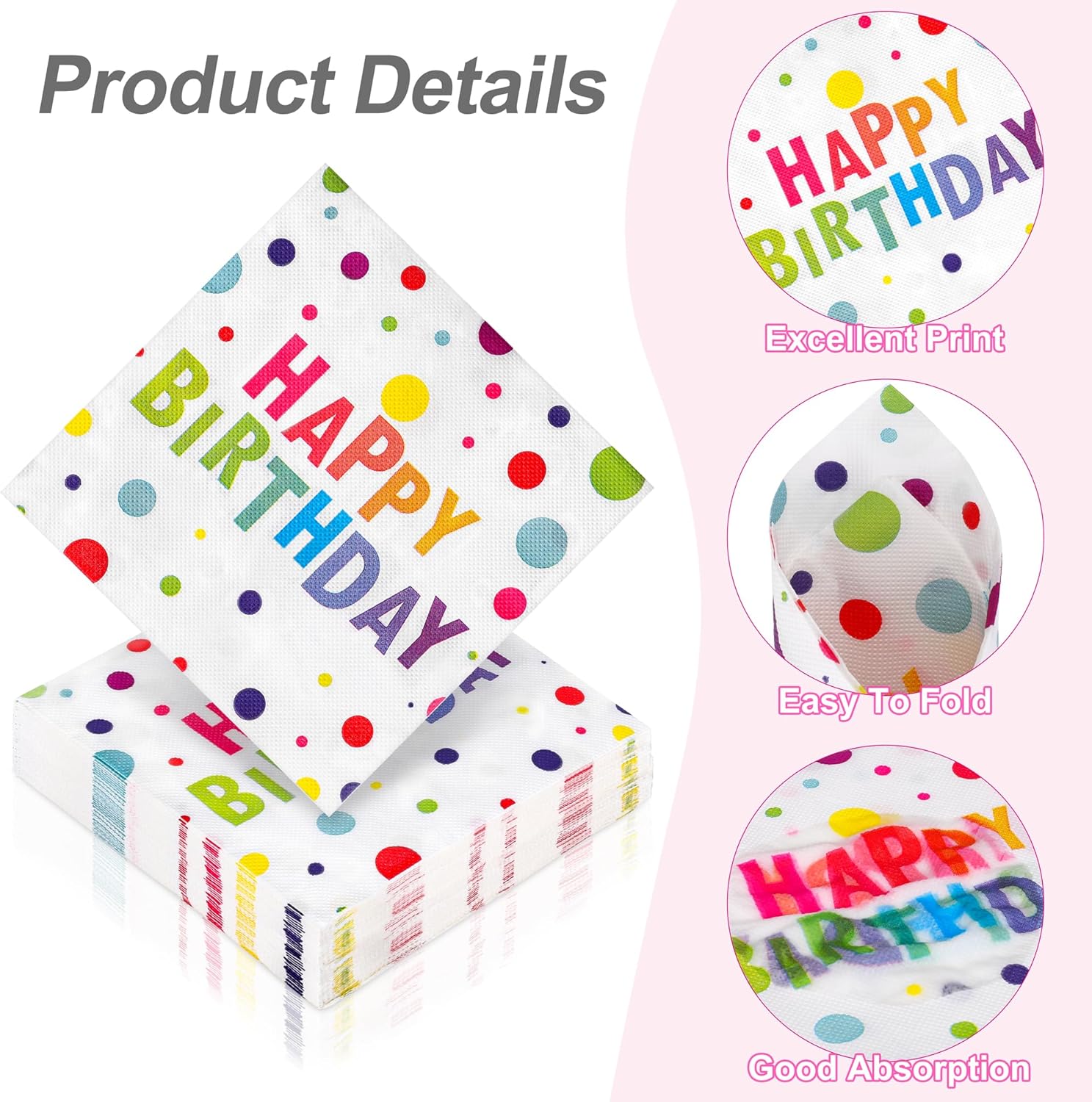 Aodaer 48 Pieces Happy Birthday Paper Napkins Disposable Rainbow Napkins Colorful Cocktail Dinner Napkin Set 13" x 13" Unfolded Tableware Napkin for Rainbow Party Supplies Birthday Party Decoration