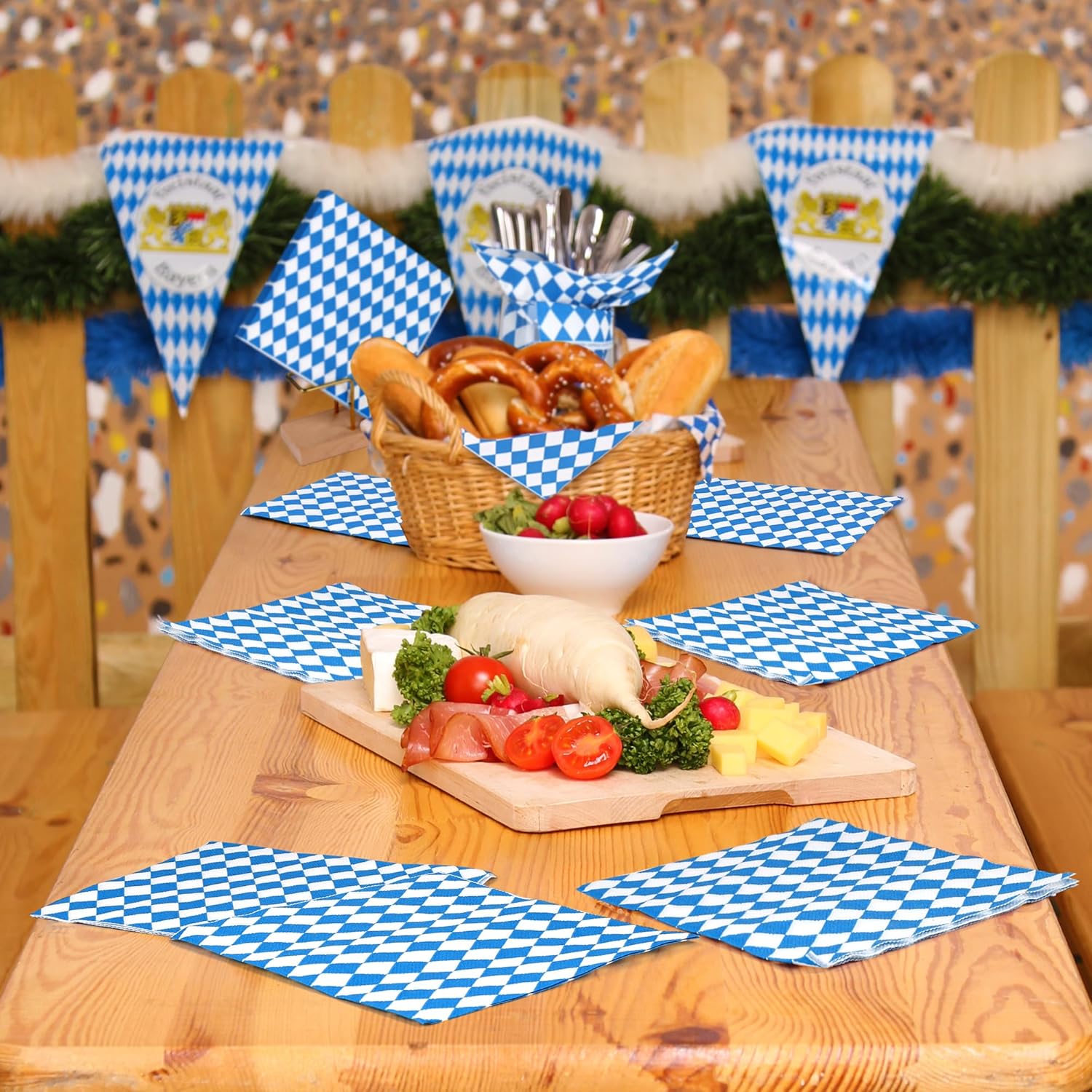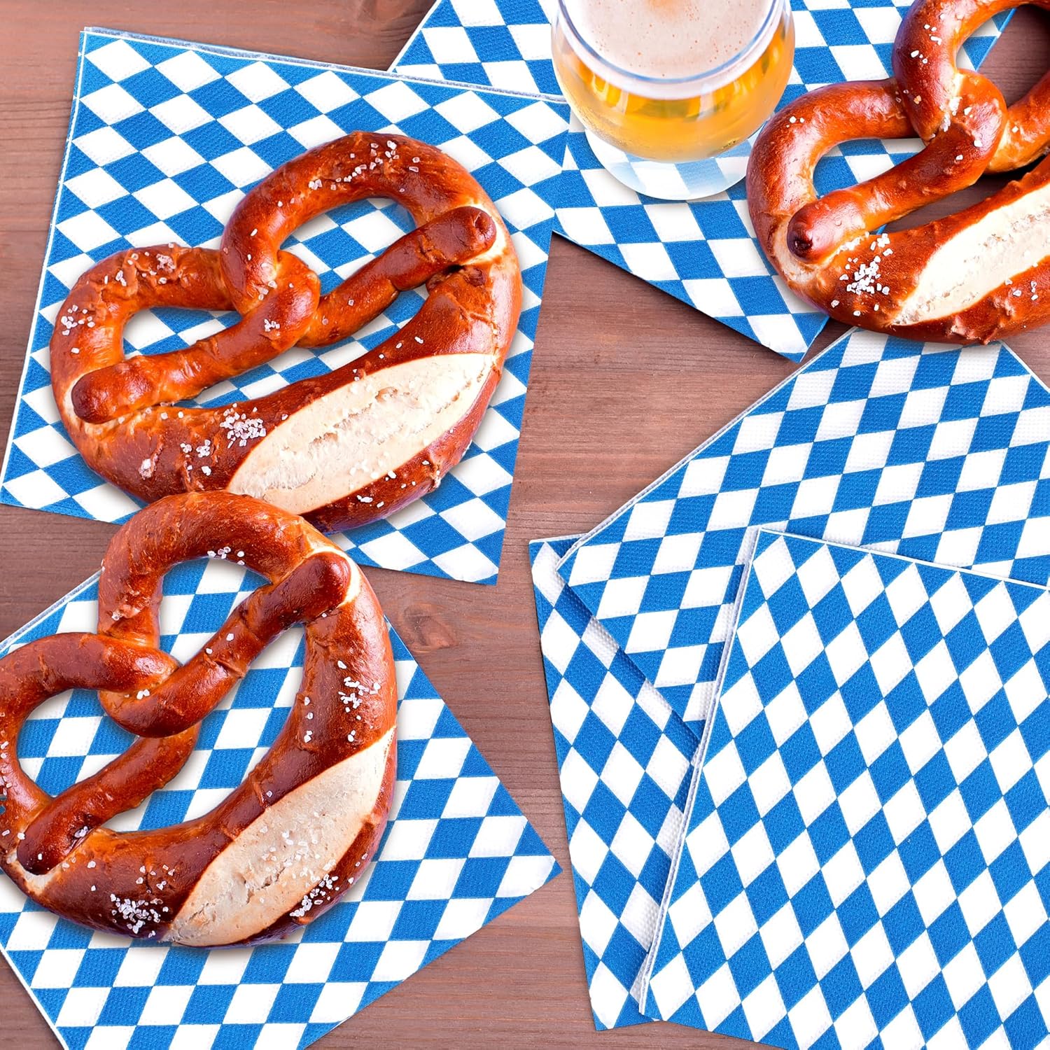 - Unique Design: embrace the spirit of the Oktoberfest with these specially designed disposable paper napkins; featuring an iconic blue and white diamond pattern that pays homage to the traditional Bavarian flag, these dinner napkins instantly transport you to the heart of Munich's festivities; the disposable Oktoberfest napkins are great supplies to add a touch of authenticity to your table setting, allowing you more time to enjoy the merriment