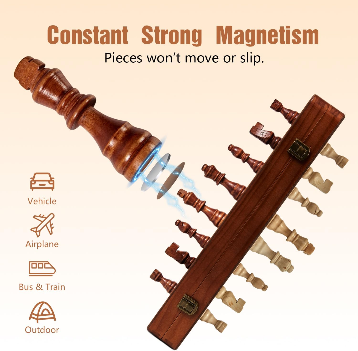 MerryPony 2 in 1 Magnetic Wooden Chess and Checkers Set, 15" Foldable Chess set for Adults & Kids, Chess Board with 2 Extra Queens, Travel Chess Set with Pieces Storage Slots, Ideal Chess for Beginner