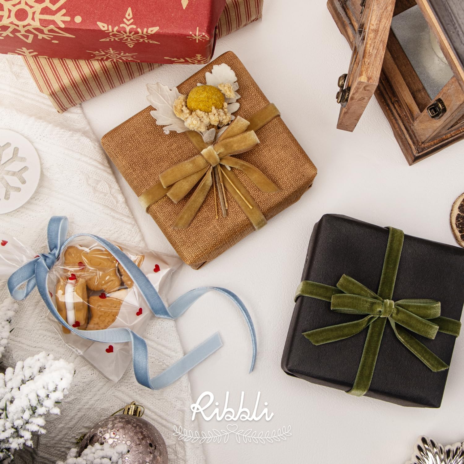 Ribbli Dusty Blue Velvet Ribbon 3/8 Inches Continuous10 Yard Spool Blue Christmas Ribbon for Gift Wrapping Crafts Home Decor