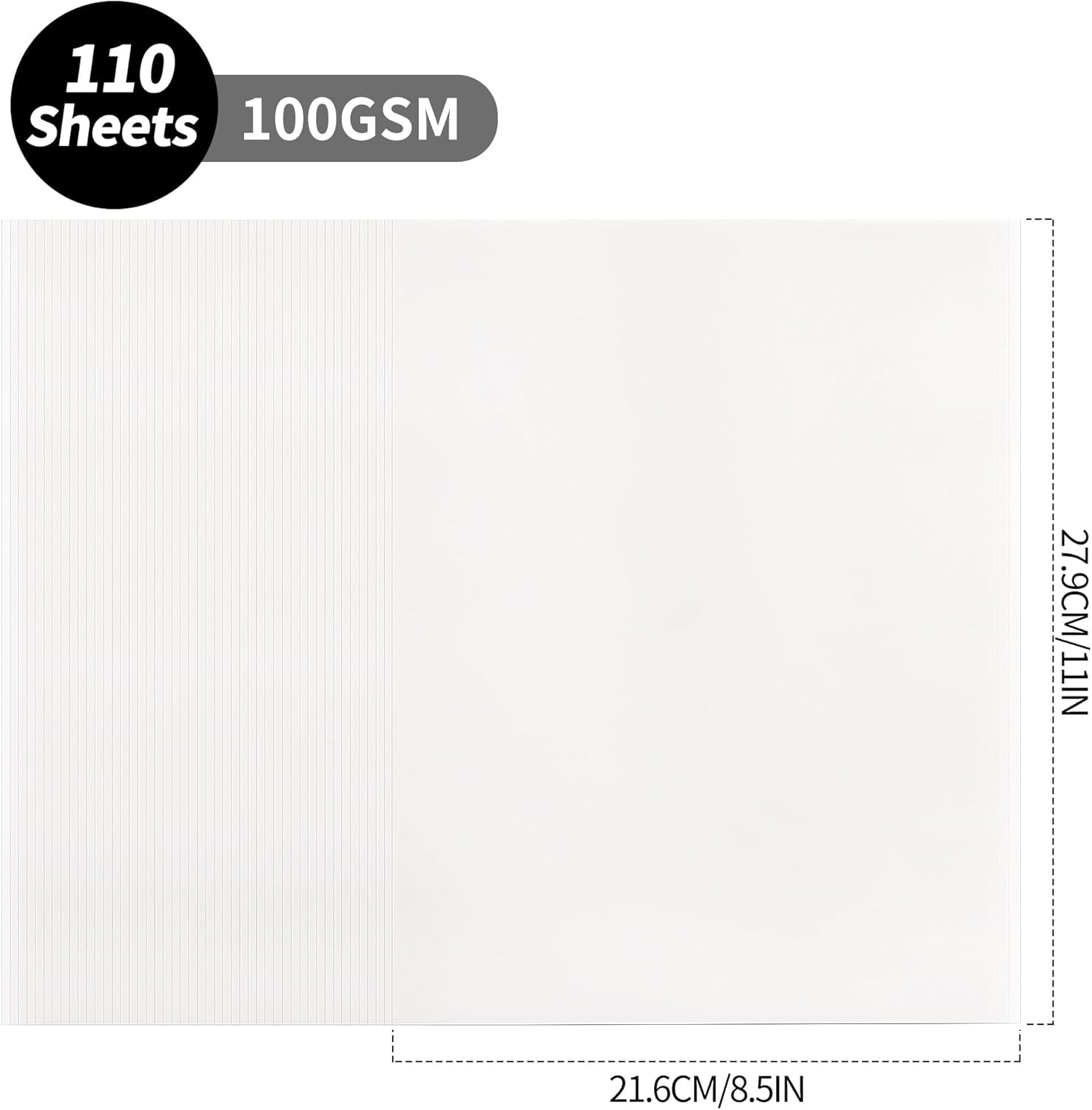 110 Sheets Transparent Vellum Paper - 8.5 x 11in 100GSM Translucent Matte Art Paper for DIY Printing Drawing Wedding Invitations Greeting Cards Decor Gift Wrapping PAP02TP110