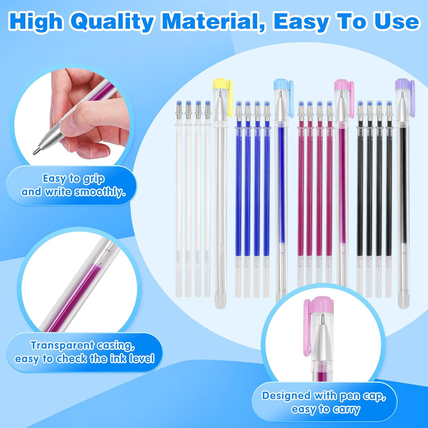 - ✍【High Quality】:Our erasable pens has stainless steel pen point, tungsten carbide beads, which is wear resistant,no ink leakage,extra-fine 2 mm writing tips,help write precise lines,pens glide on easily. High transparent pen made of excellent quality PC, easy to identify the color of the ink. Imported high temperature ink,the lines drawn are smooth and clear, colors bright. Large ink capacity ,the inner diameter of all these refill rods are 2.86mm.
