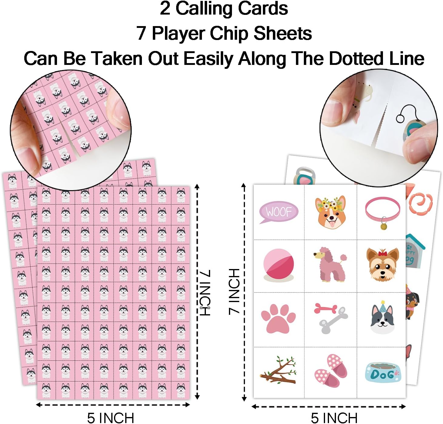 - Package Include: This Puppy Dog Party Bingo Game Set includes 24 different kinds of bingo cards, 2 calling cards and 7 bingo marker cards.
