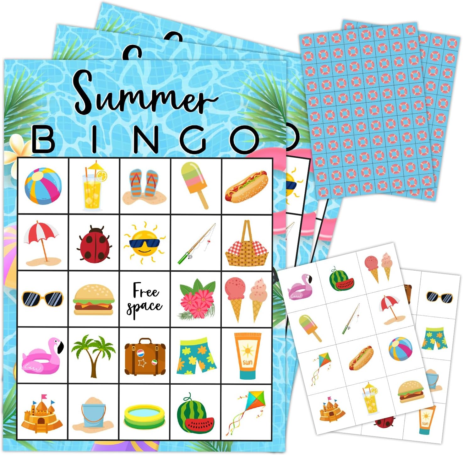 - Package Include: This Summer Party Bingo Game Set includes 24 different kinds of bingo cards, 2 calling cards and 7 bingo marker cards.