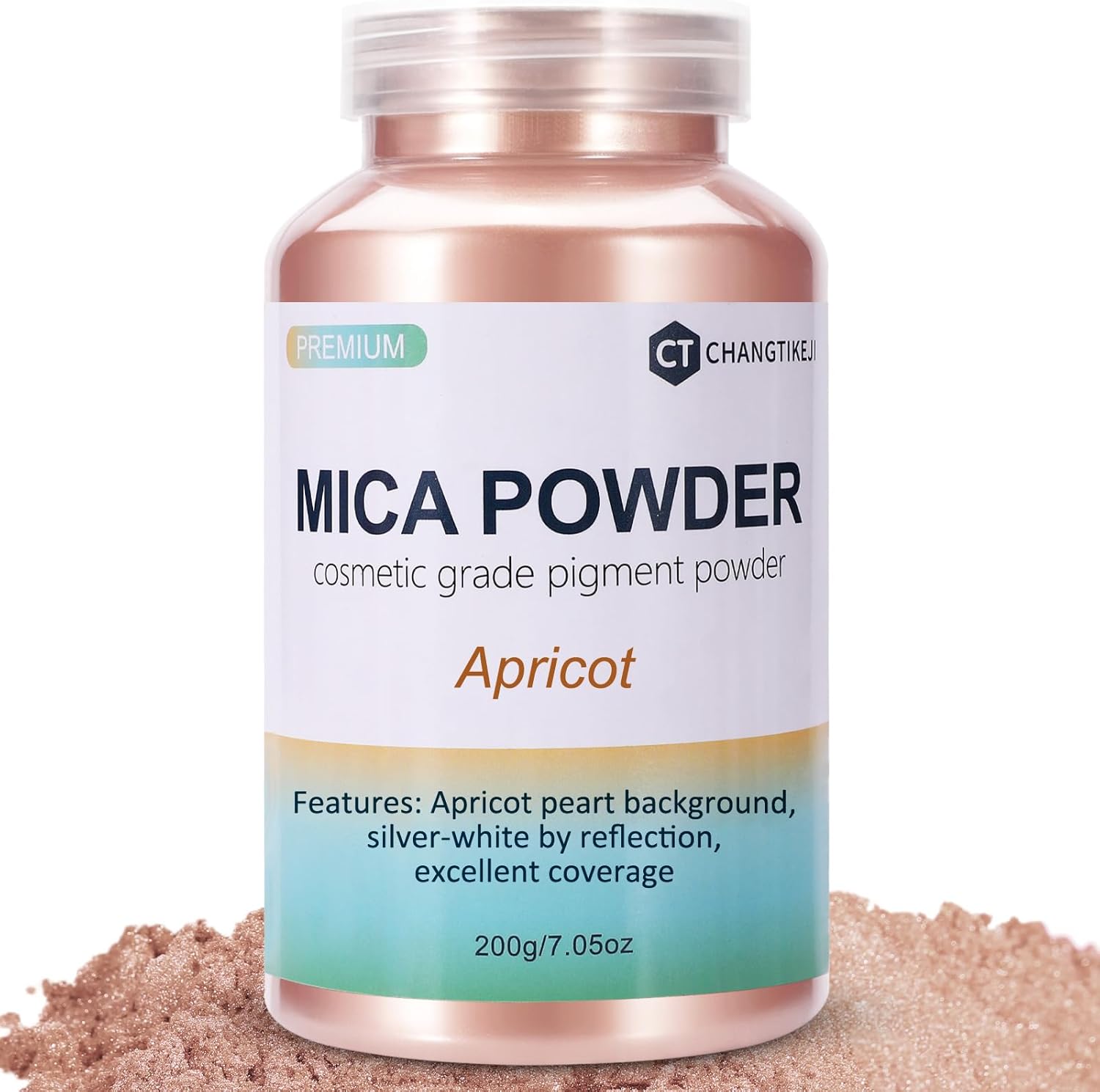 - 【Super Surprise Color Combination】:Our Apricot mica powder net weight is 200g/7.05oz large bottle. Just a little mica powder can bring a very gorgeous effect.With its shiny surface,this mica powder pigment provides a gorgeous and lasting effect for your artistic creation.