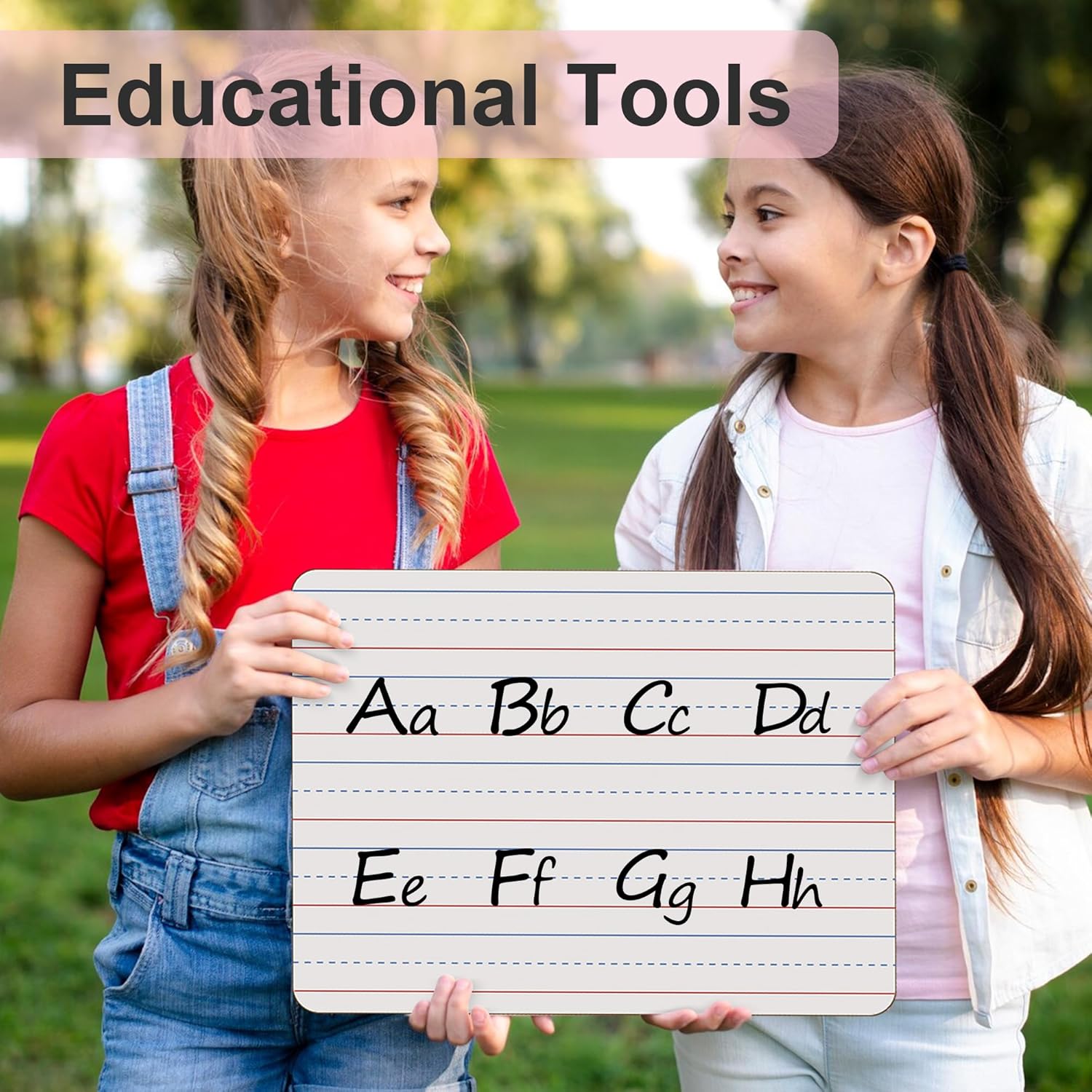 Set of 24 Dry Erase Boards, Double Sided Small Whiteboards with Lines for Kids, Students, Teacher & Classroom Pack, 9"x12" Mini Individual White Boards Lined for Writing with 24 Makers, 24 Erasers