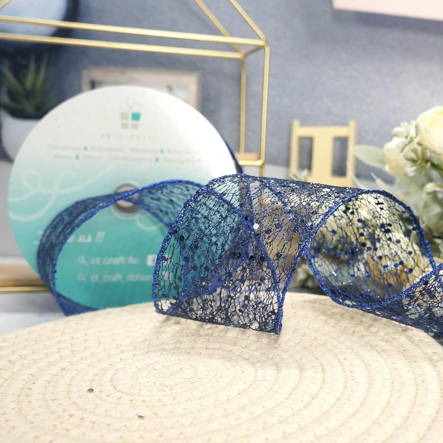 - A MUST-HAVE FOR DECORATION - Don't miss it if you're choosing a Sparkling Glitter Mesh Wired Ribbon 2.5" Blue Navy for your decoration! Our ribbon works perfectly for decorating and adding finishing touch to your craft projects. Simple and elegant.