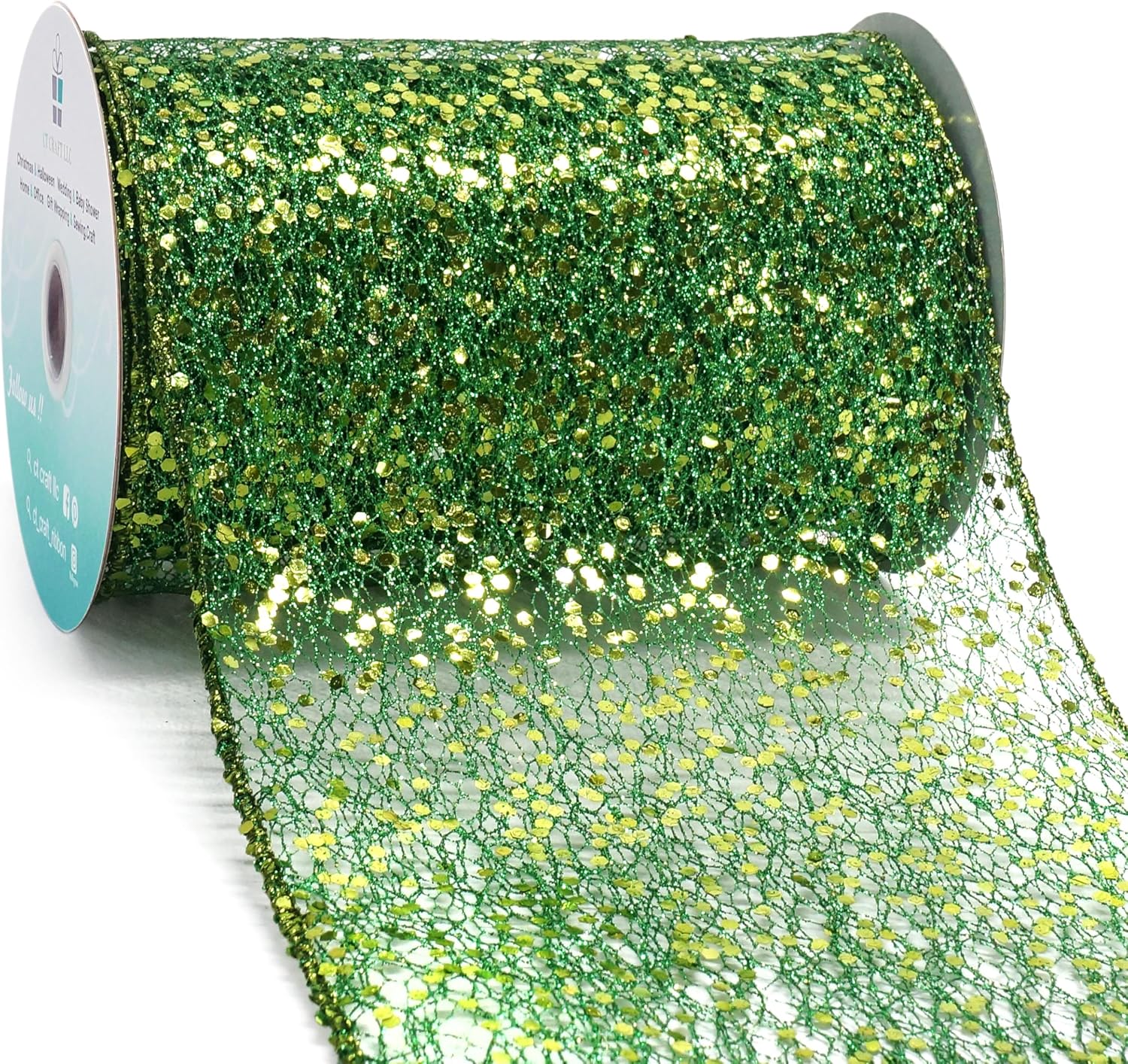 - A MUST-HAVE FOR DECORATION - Don't miss it if you're choosing a Sparkling Glitter Mesh Wired Ribbon 6" Green for your decoration! Our ribbon works perfectly for decorating and adding finishing touch to your craft projects. Simple and elegant.