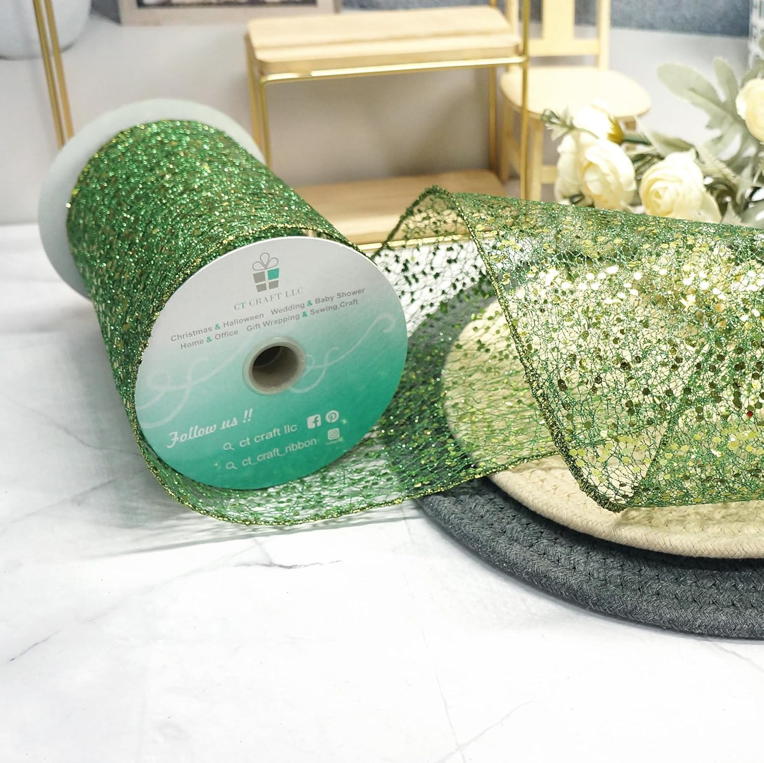 CT CRAFT LLC Sparkling Glitter Mesh Wired Ribbon 6" x 10 Yards Green for Christmas Home Decor Bow Gift Wrapping DIY Crafts Wreath