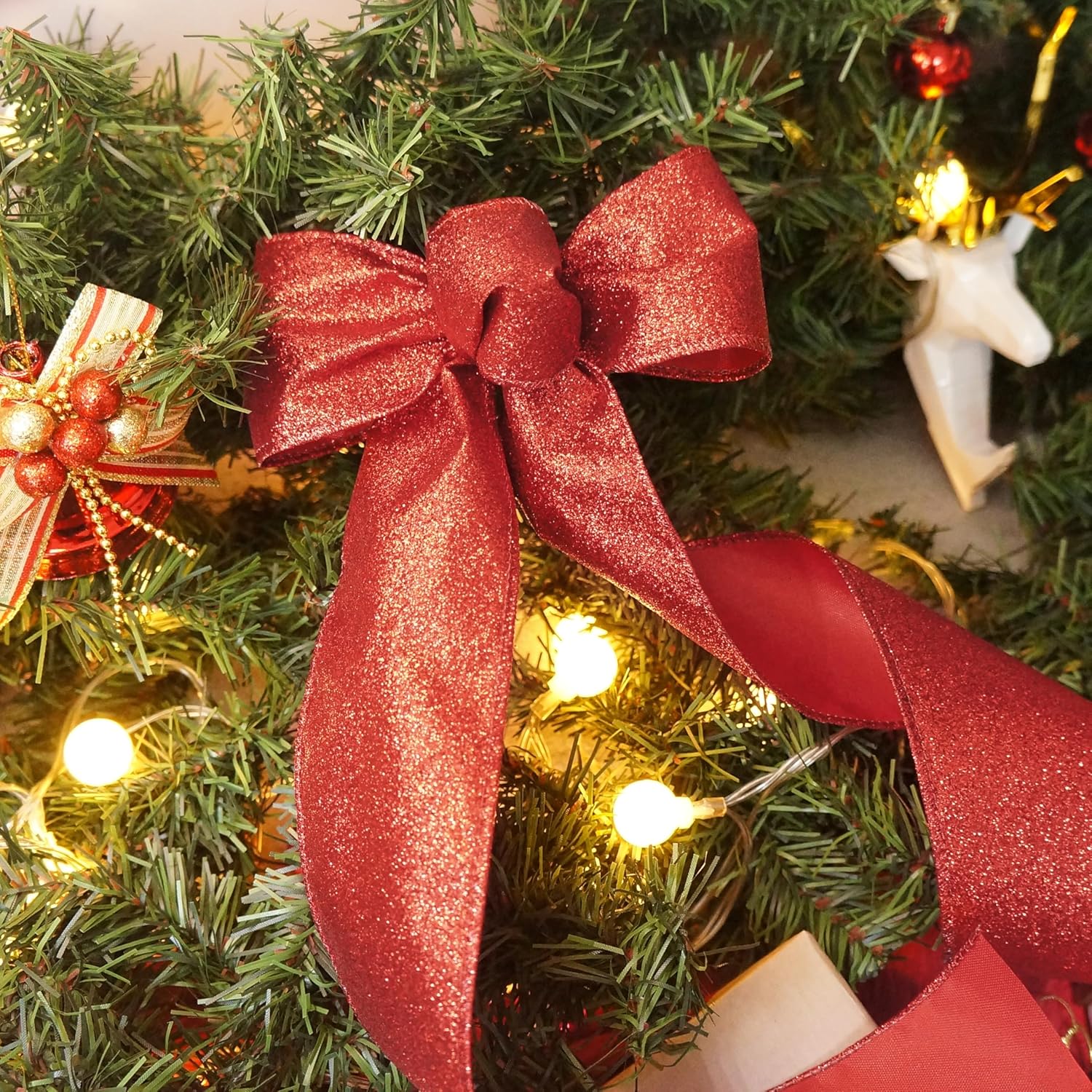 - GREAT WORKMANSHIP - Our Glitter Wired Ribbon 2.5" has a density weave so you wonโt find any loose edges. You wonโt find any fraying ends or loose strings anywhere, making our Glitter Wired Ribbon 2.5" red color perfect for high-end and professional DIY works and Crafts.