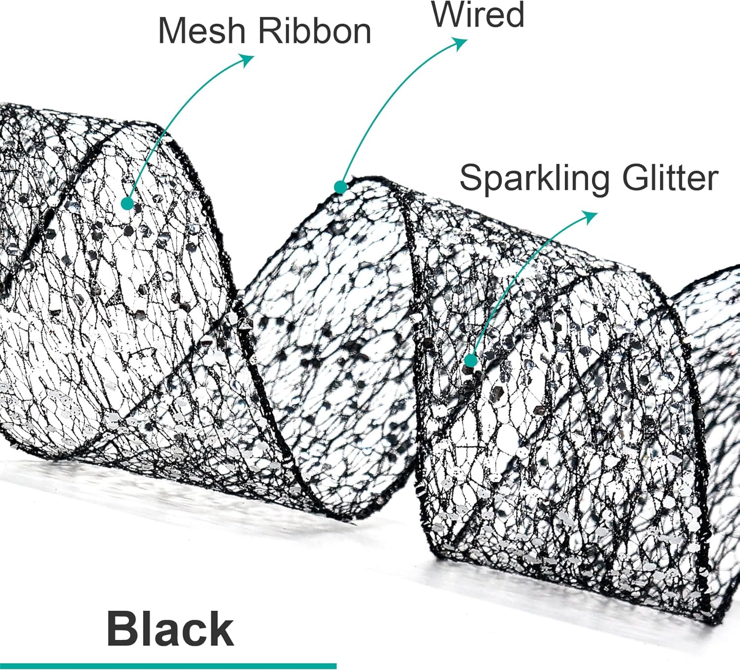 - GREAT WORKMANSHIP - Our Sparkling Glitter Mesh Wired Ribbon 6" has a density weave so you wonโt find any loose edges. You wonโt find any fraying ends or loose strings anywhere, making our Sparkling Glitter Mesh Wired Ribbon 6" Black color perfect for high-end and professional DIY works and Crafts.