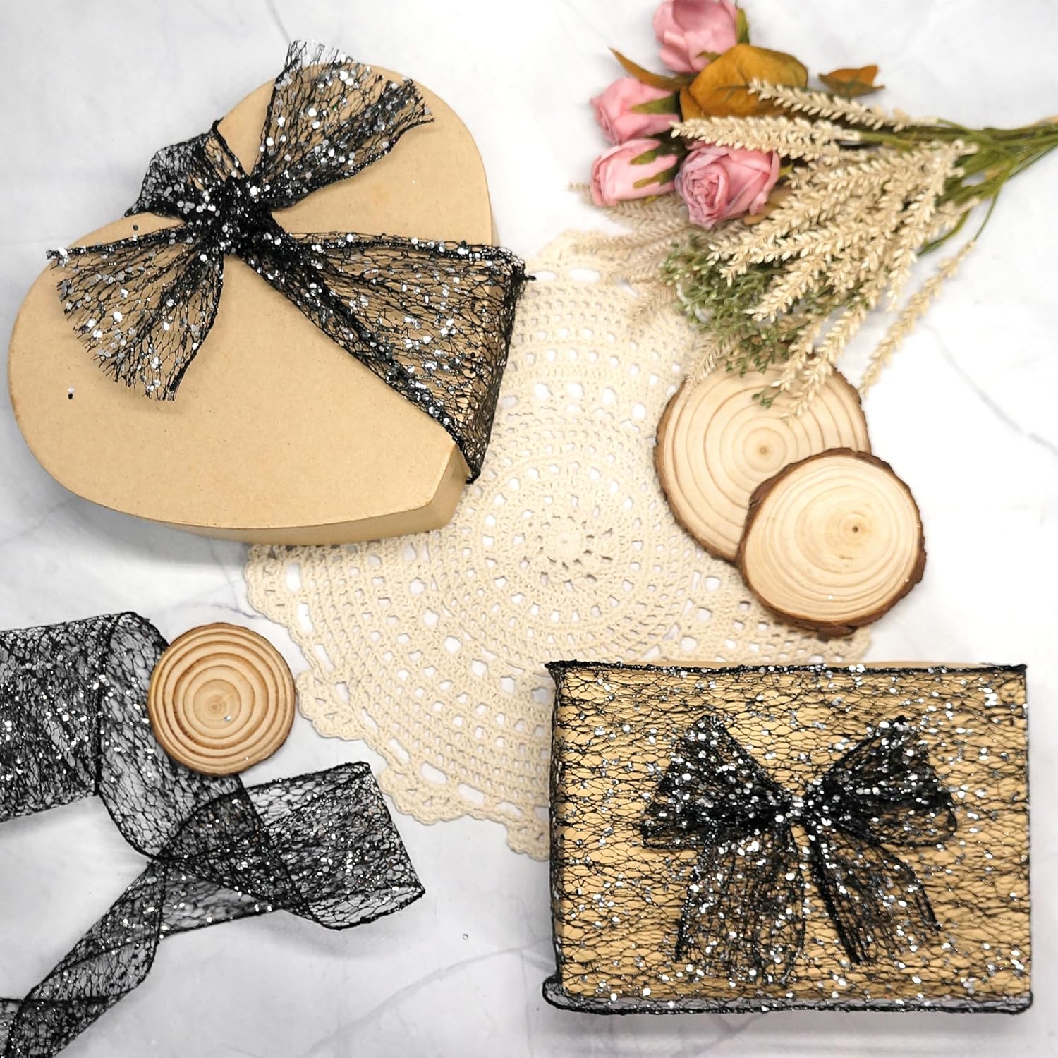 - A MUST-HAVE FOR DECORATION - Don't miss it if you're choosing a Sparkling Glitter Mesh Wired Ribbon 6" Black for your decoration! Our ribbon works perfectly for decorating and adding finishing touch to your craft projects. Simple and elegant.