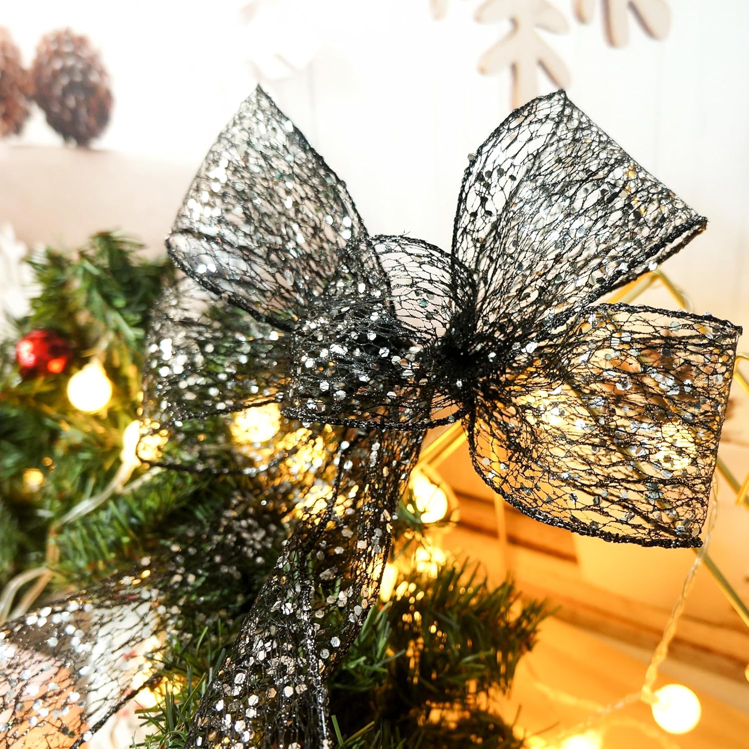 - OCCASION - Our Sparkling Glitter Mesh Wired Ribbon 2.5" Black color are very easy to match and suitable for birthdays, party decorations, Mother's Day, Valentine's Day, Easter, Independence Day, Halloween, Christmas, New Year's gifts, Wedding decorations, Baby showers etc.