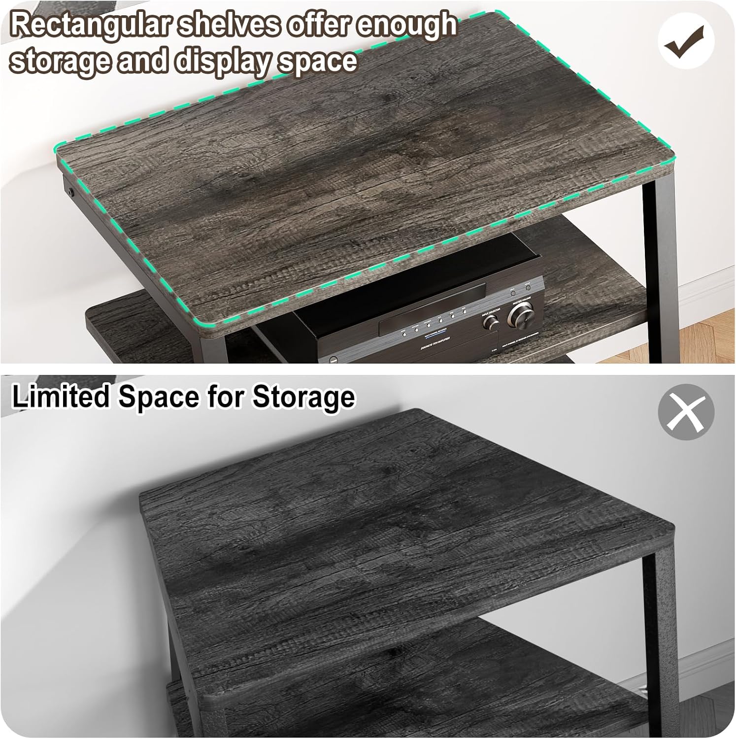 - Strong & Stylish Constructure - Very solid and shelves are very strong to hold everything. This audio rack is made of premium 15mm MDF board which has superior load-bearing to guarantee long-term use. Metal frame adds sturdiness, so it can hold all of your audio-visual equipment well. This media tower is relatively low profile and looks stylish.