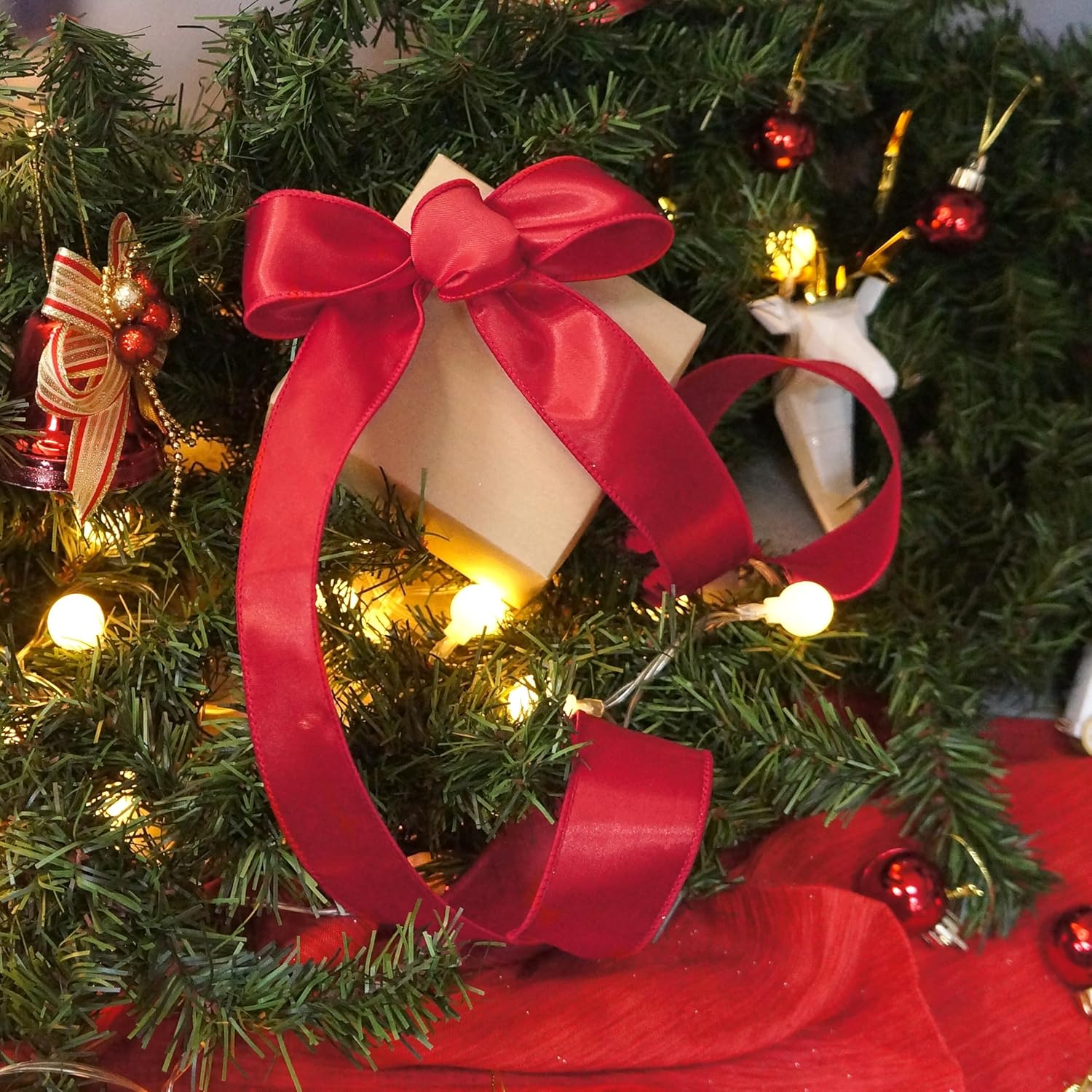 - EASY TO USE - The 20-yard long red satin wired ribbon 1.5" is enough for all the decorating and accenting your DIY Crafts. The satin wired ribbon 1.5" is easy to use and won’t tangle. It can be tied or glued on gift packages and DIY craft projects such as car and chair bow, wreath, flower bouquet.