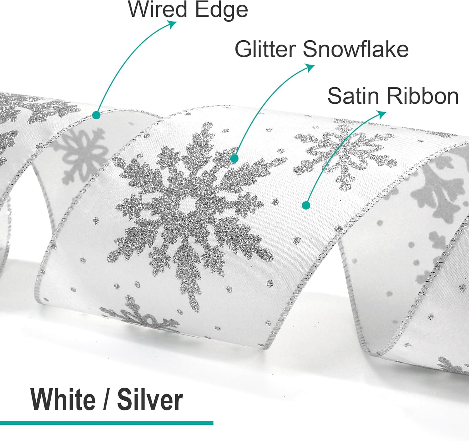 - A MUST-HAVE FOR DECORATION - Don't miss it if you're choosing a White Satin with Silver Snowflake Wired Ribbon 4" for your decoration! Our ribbon works perfectly for decorating and adding finishing touch to your craft projects. Simple and elegant.