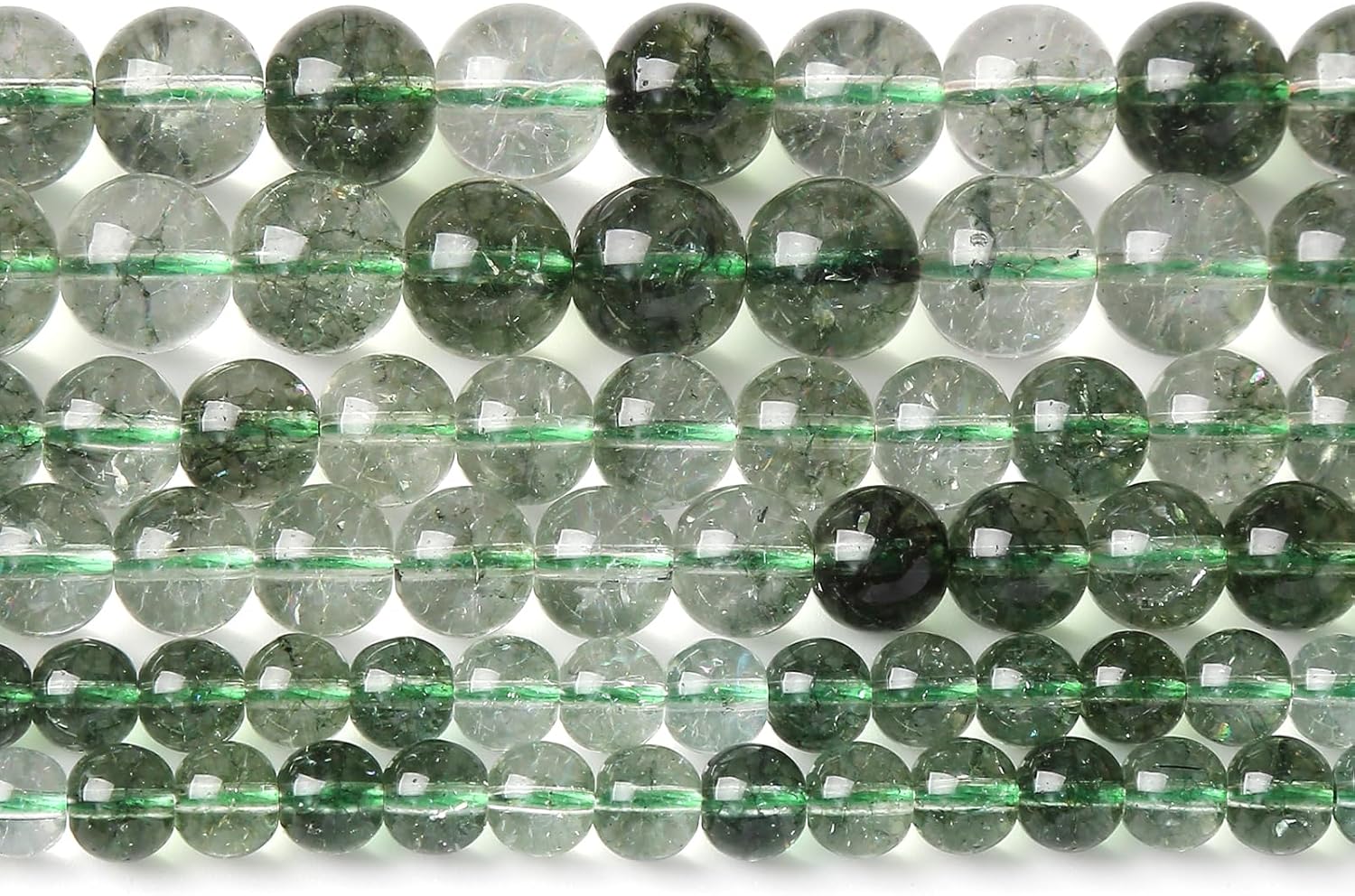 - 【Material】: Genuine Natural Green Crackle Phantom Ghost Crystal Quartz Gemstones ,Round Loose Stone Beads,Energy Stone Healing Power,Help activate the mind.