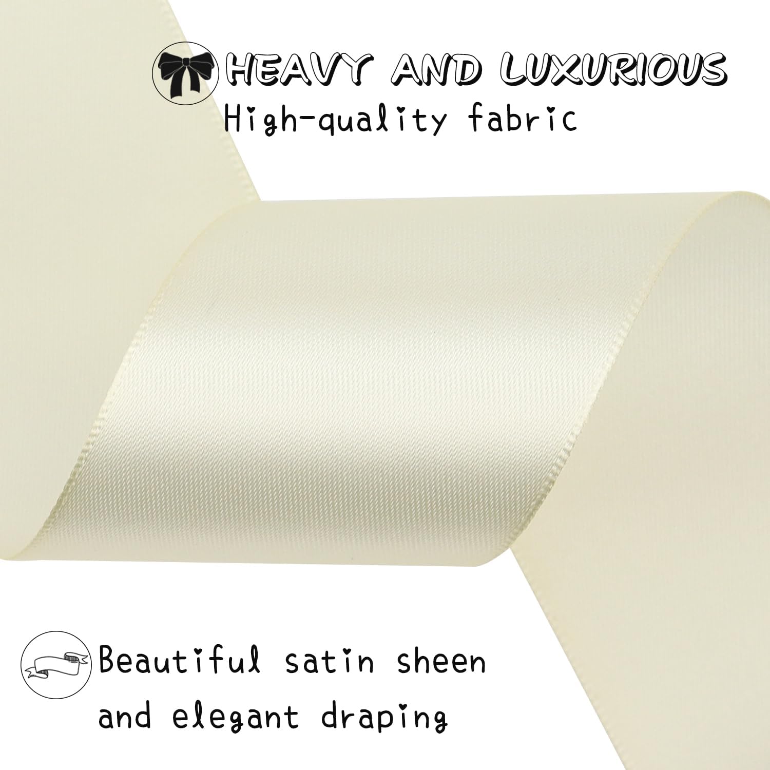 Rice White Solid Satin Ribbon 2 Inch 25 Yards Solid Polyester Fabric Ribbon for Gift Wrapping Wedding Christmas Baby Shower Birthday Party Decoration Handmade Immortal Flower Craft