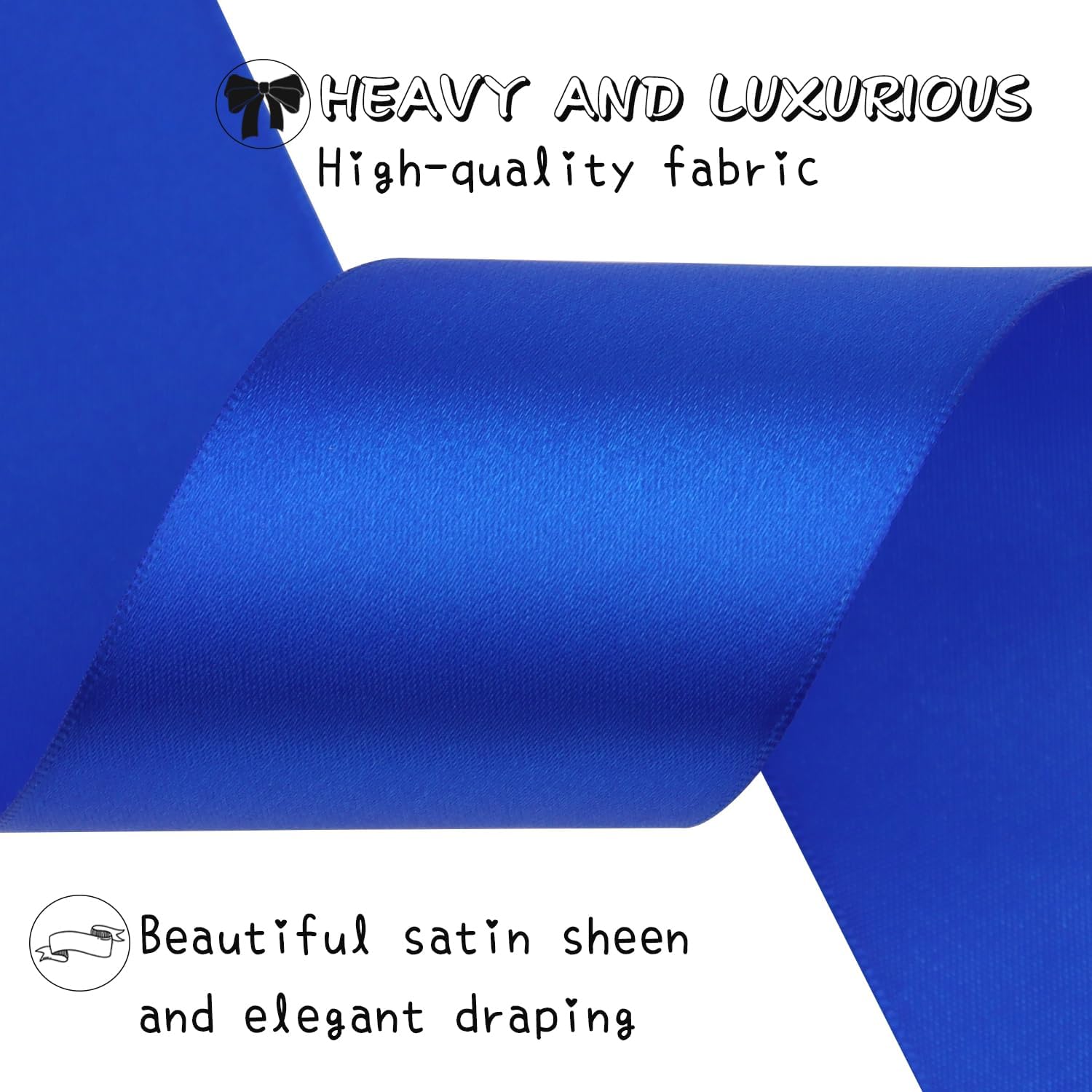 Blue Solid Satin Ribbon 2 Inch 25 Yards Solid Polyester Fabric Ribbon for Gift Wrapping Wedding Christmas Baby Shower Birthday Party Decoration Handmade Immortal Flower Craft