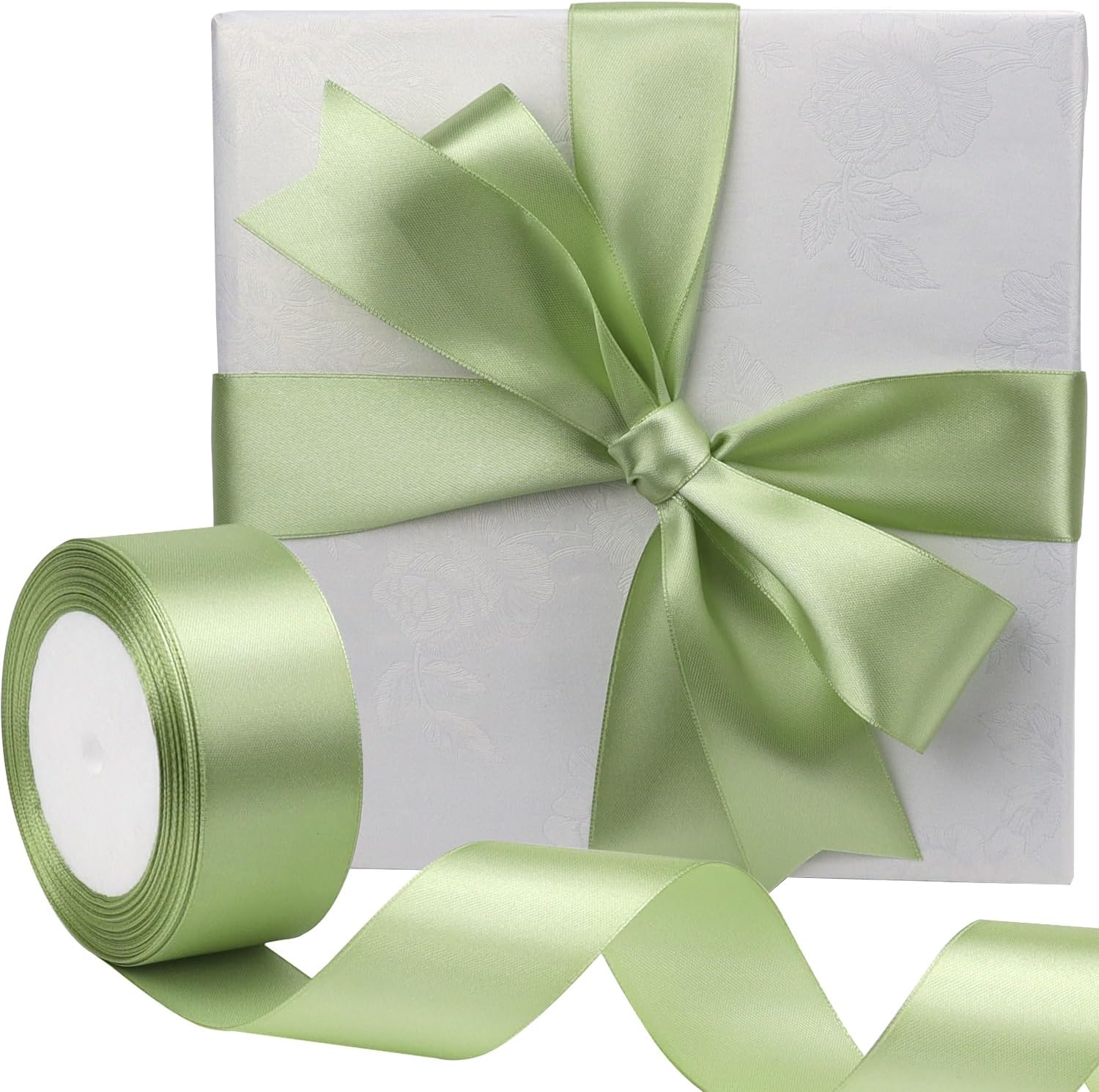 Pale Green Solid Satin Ribbon 1-1/2 Inch 25 Yards Solid Polyester Fabric Ribbon for Gift Wrapping Wedding Christmas Baby Shower Birthday Party Decoration Handmade Immortal Flower Craft