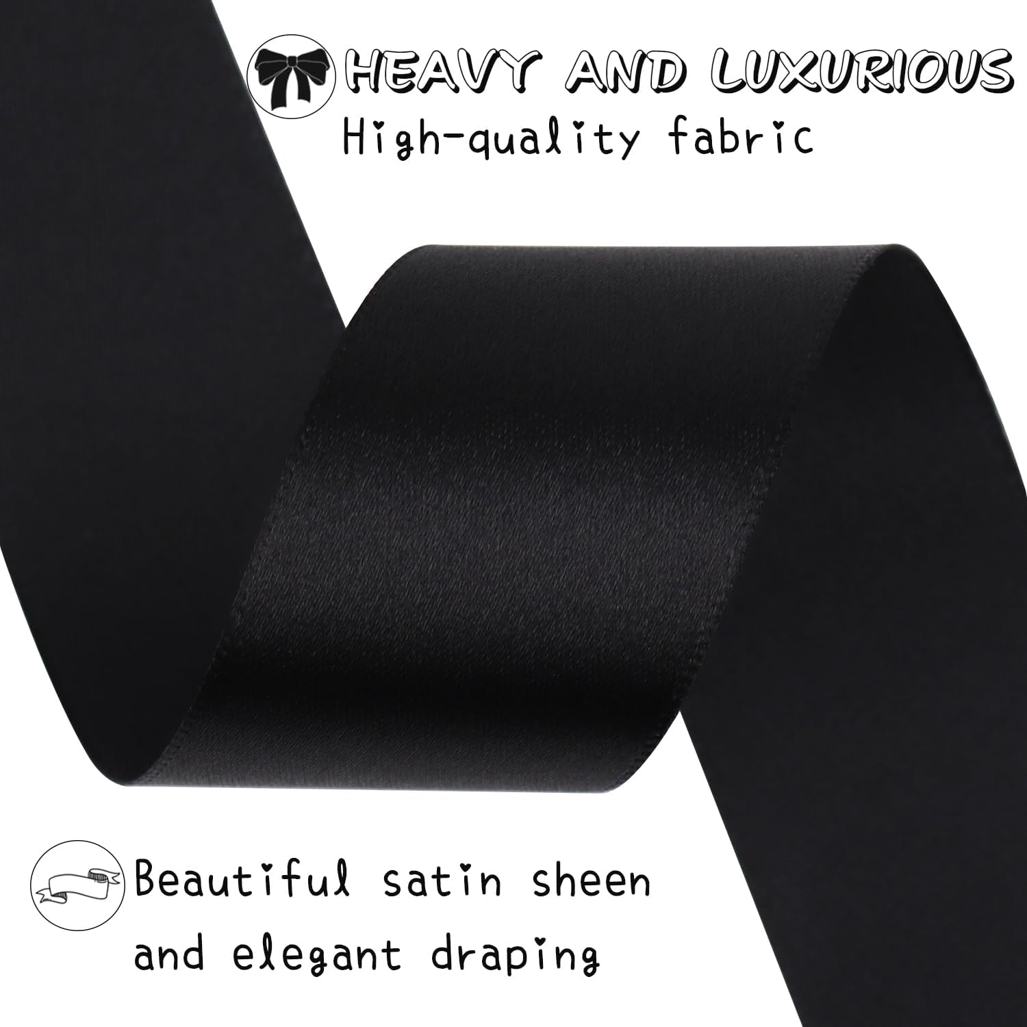 Black Solid Satin Ribbon 1-1/2 Inch 25 Yards Solid Polyester Fabric Ribbon for Gift Wrapping Wedding Christmas Baby Shower Birthday Party Decoration Handmade Immortal Flower Craft