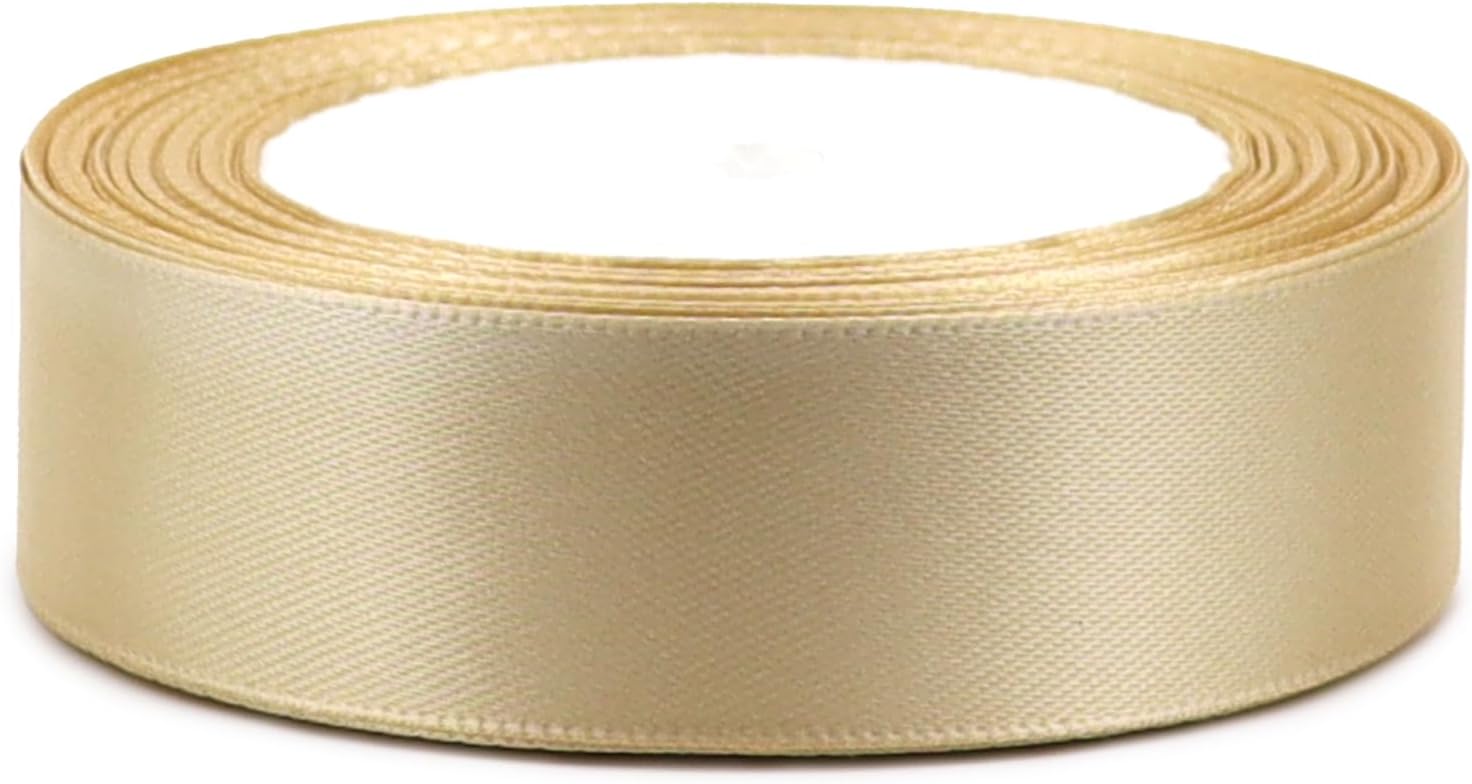 Champagne Solid Satin Ribbon 1 Inch 25 Yards Solid Polyester Fabric Ribbon for Gift Wrapping Wedding Christmas Baby Shower Birthday Party Decoration Handmade Immortal Flower Craft