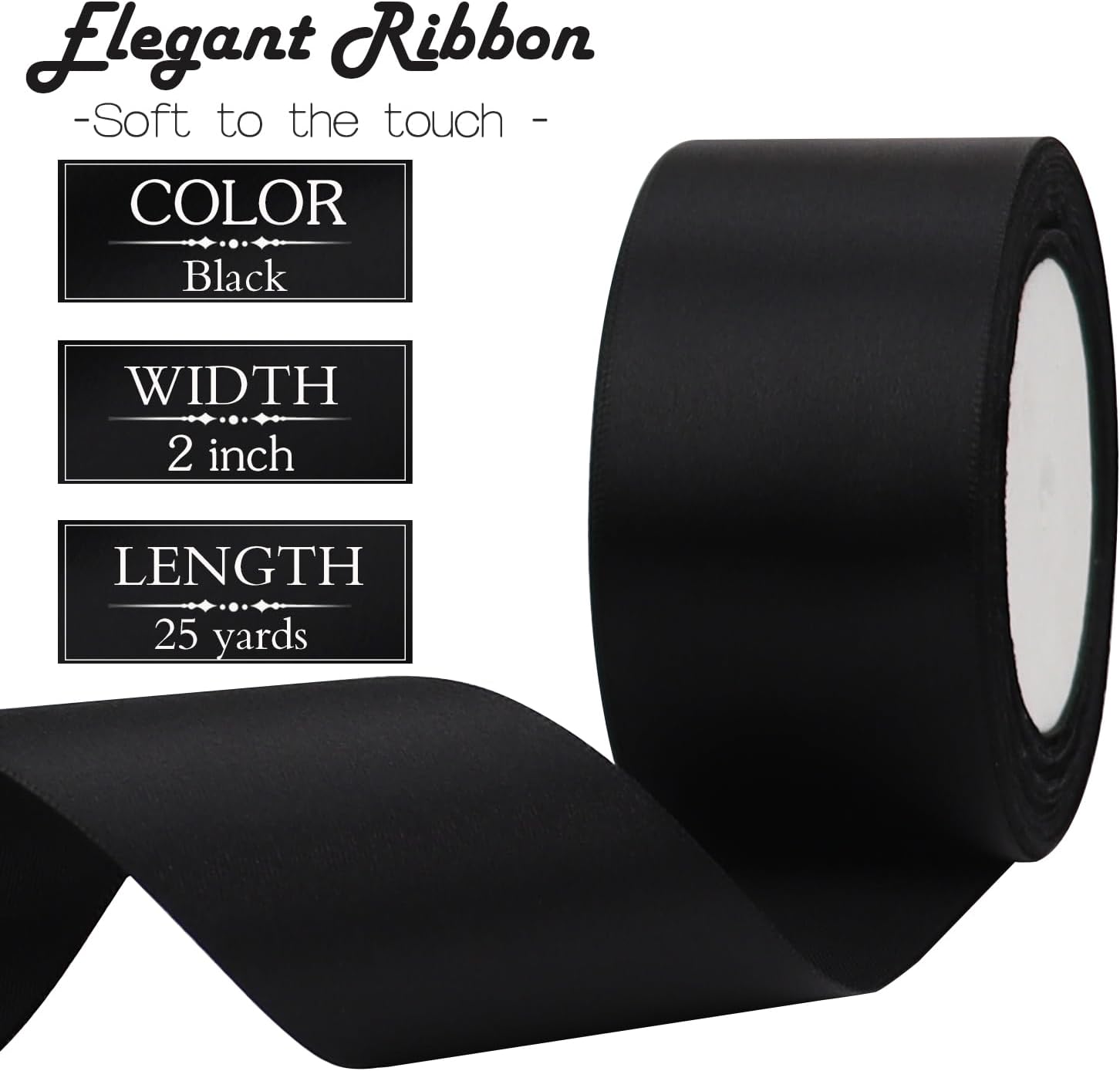 - Premium Quality: Made from high-grade solid polyester fabric, our 2-inch wide ribbon boasts a silky smooth texture that’s both durable and easy to work with. The 25-yard roll ensures you have plenty to complete your projects without running short.
