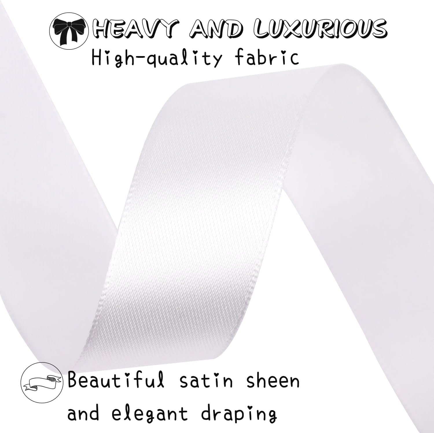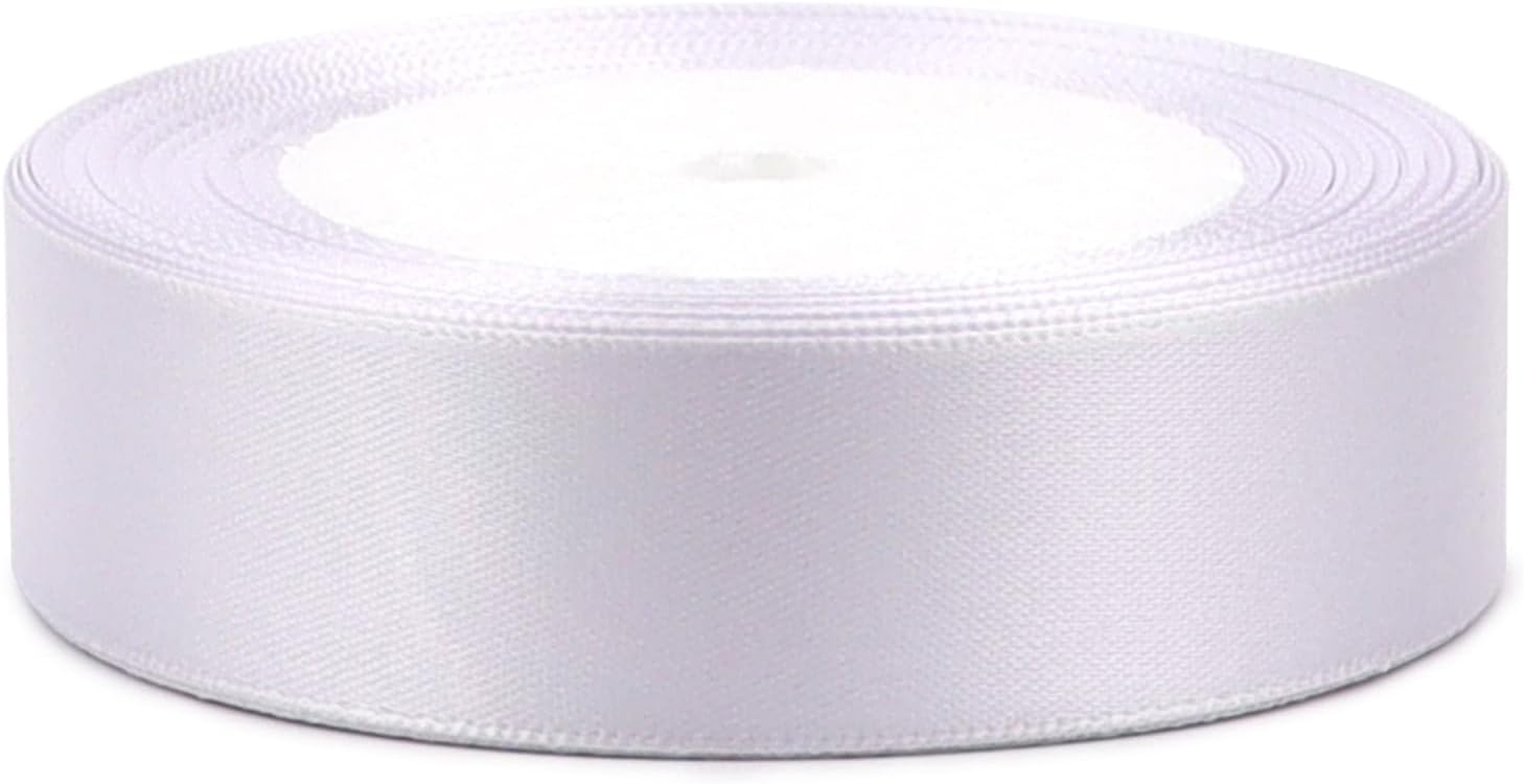 White Solid Satin Ribbon 1 Inch 25 Yards Solid Polyester Fabric Ribbon for Gift Wrapping Wedding Christmas Baby Shower Birthday Party Decoration Handmade Immortal Flower Craft