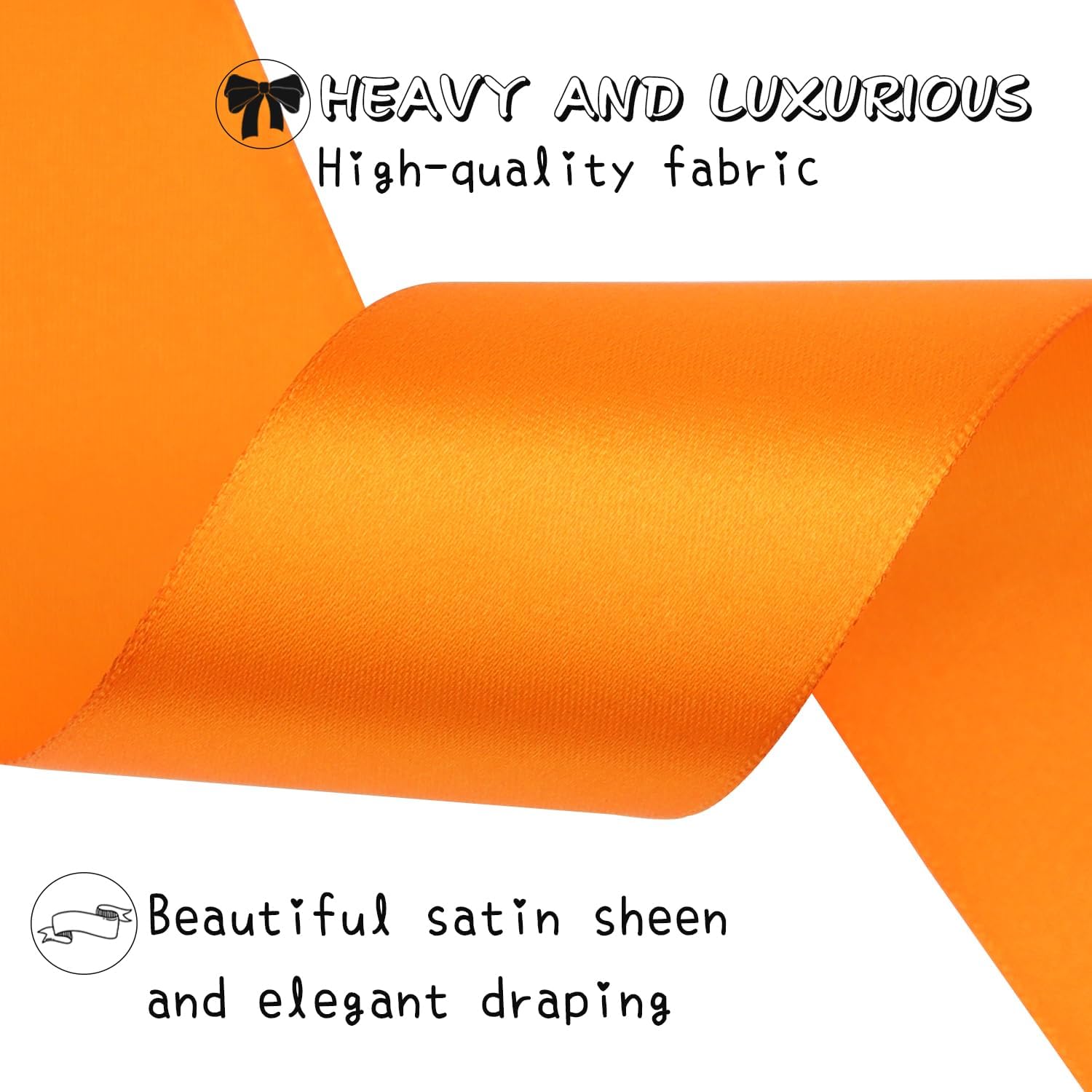 Orange Solid Satin Ribbon 2 Inch 25 Yards Solid Polyester Fabric Ribbon for Gift Wrapping Wedding Christmas Baby Shower Birthday Party Decoration Handmade Immortal Flower Craft