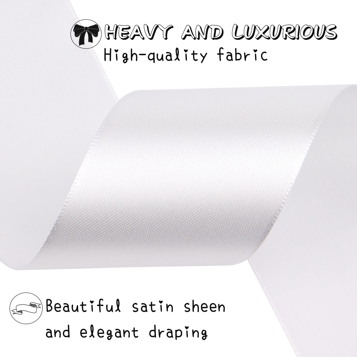 White Solid Satin Ribbon 2 Inch 25 Yards Solid Polyester Fabric Ribbon for Gift Wrapping Wedding Christmas Baby Shower Birthday Party Decoration Handmade Immortal Flower Craft