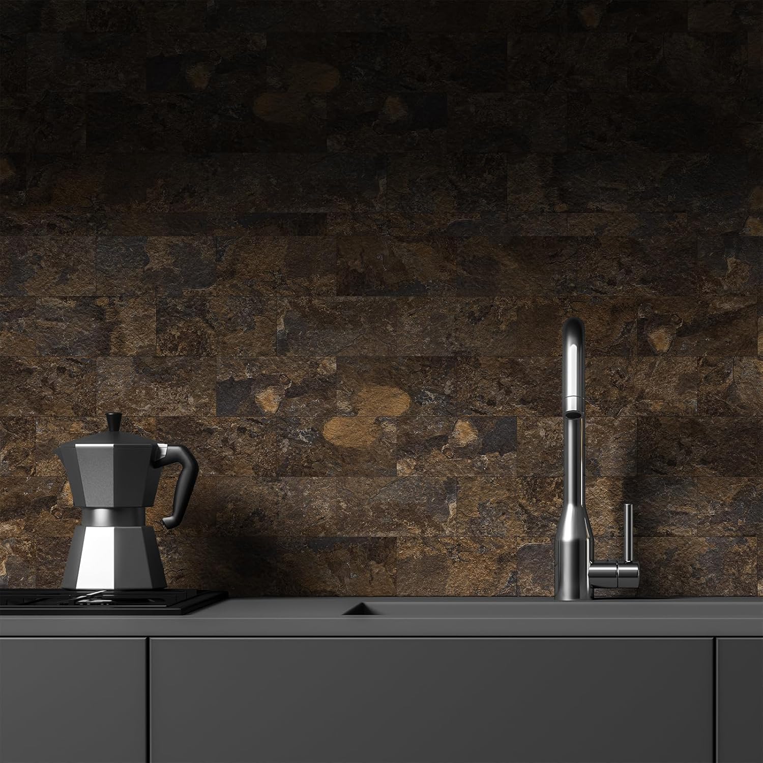 4 Pieces Peel and Stick Backsplash for Kitchen, 3" x 6" PVC Subway Tile 2024 Upgraded Rust Slate Backsplash Stick on Tile Elevate Kitchen, Bathroom, Fireplace,RV