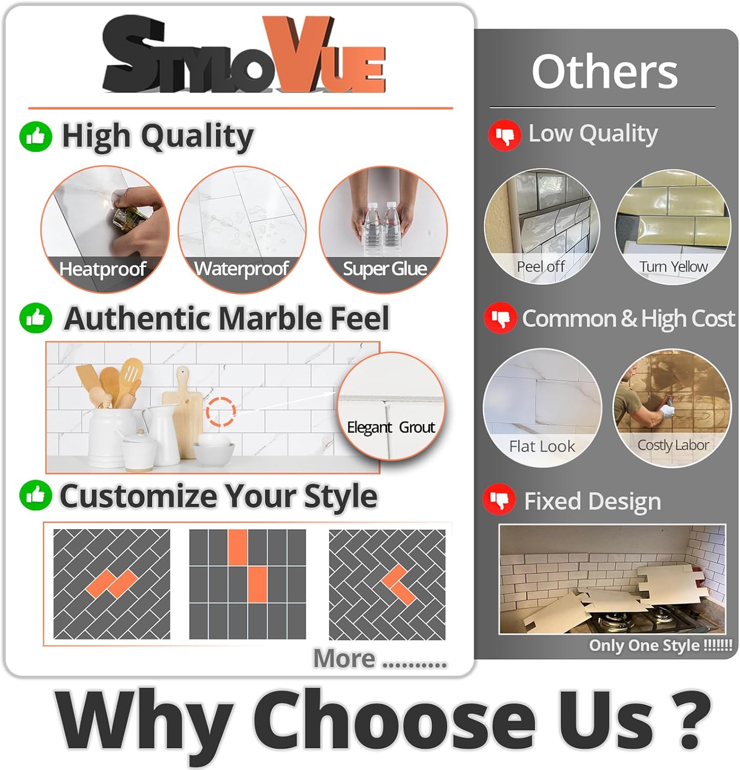 - šš„ššÆššš ššØš®š« šš©ššš: Featuring unique slot edges for a realistic grout-look, StyloVue self adhesive wall tiles offer an authentic design and texture that customers adore. Elevate the aesthetic of your space while simplifying maintenance and cleaning, without the hassle of traditional grouting.