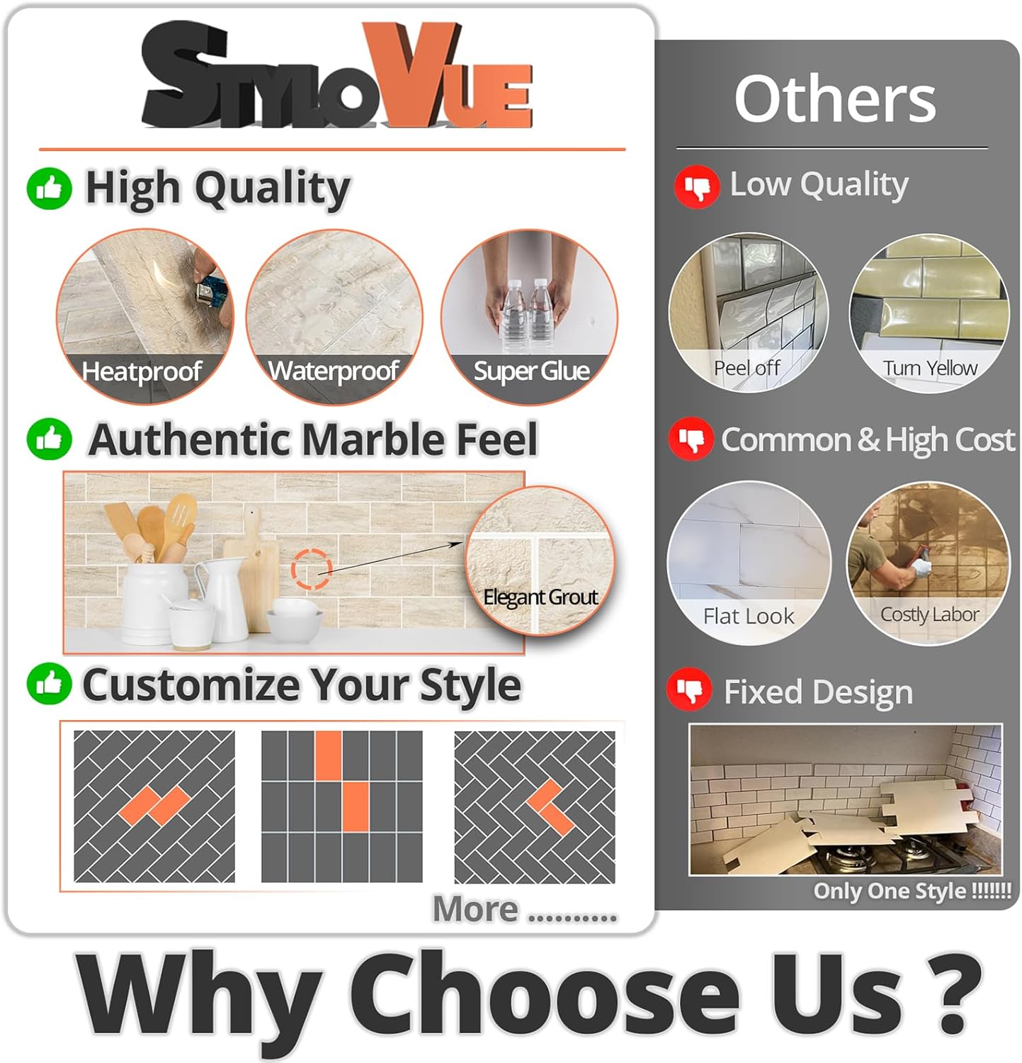 - šš„ššÆššš ššØš®š« šš©ššš: Featuring unique slot edges for a realistic grout-look, StyloVue self adhesive wall tiles offer an authentic design and texture that customers adore. Elevate the aesthetic of your space while simplifying maintenance and cleaning, without the hassle of traditional grouting.