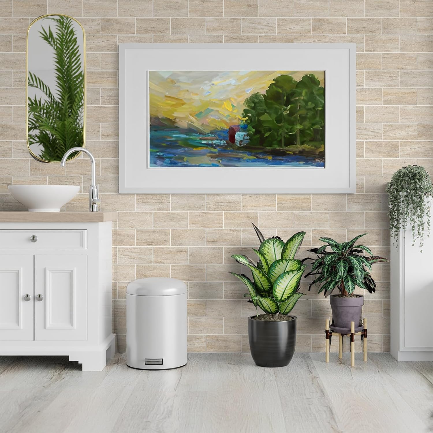 - ššš«š¬ššš¢š„š ššØš¦š šš¦š©š«šØšÆšš¦šš§š: Transform any space in your home with endless possibilities. Ideal for kitchen backsplashes, bathrooms, laundry rooms, RVs, campers, pantries, fireplaces, living room walls, and more, these tiles add a touch of elegance and style to every corner of your space.
