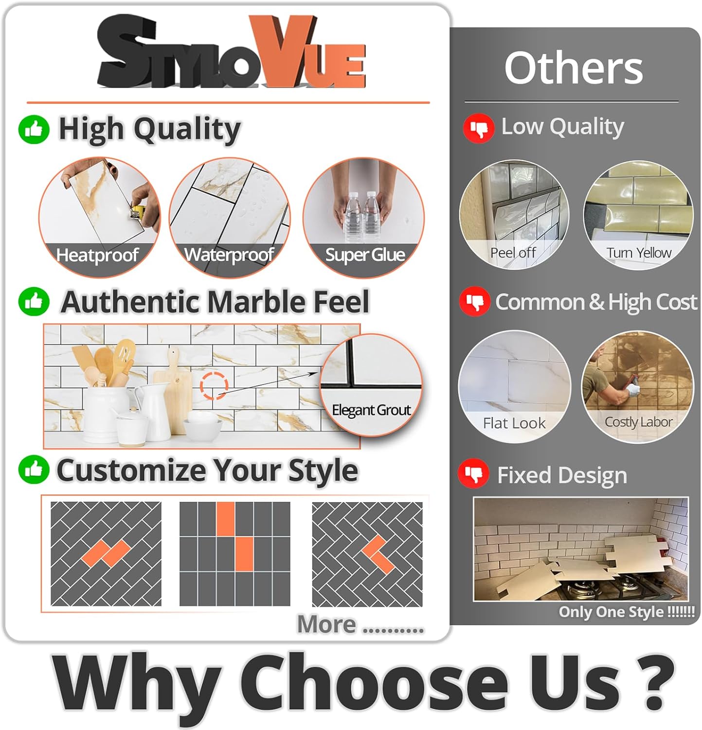 - šš„ššÆššš ššØš®š« šš©ššš: Featuring unique slot edges for a realistic grout-look, StyloVue self adhesive wall tiles offer an authentic design and texture that customers adore. Elevate the aesthetic of your space while simplifying maintenance and cleaning, without the hassle of traditional grouting.