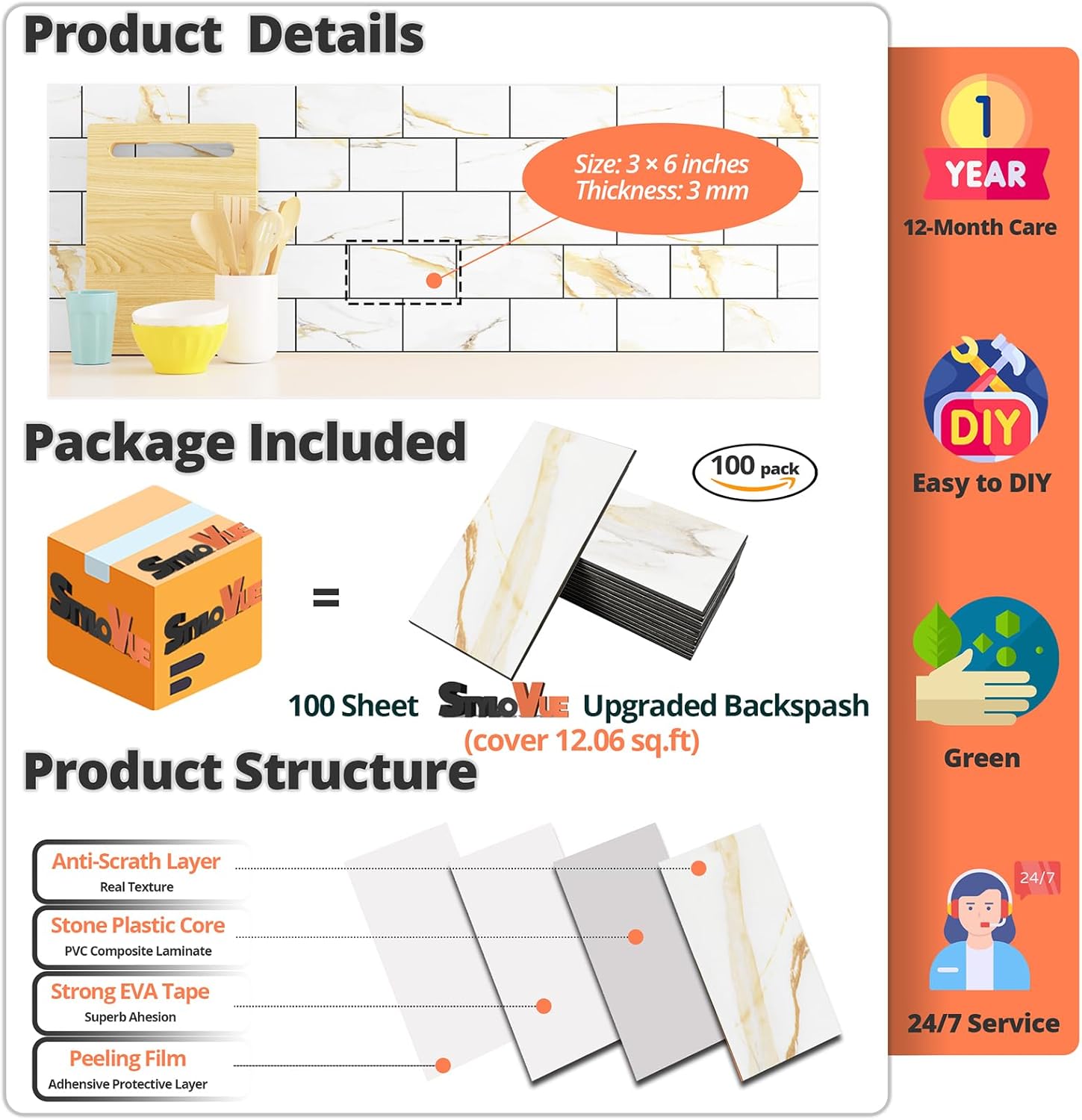 - šš«šš¦š¢š®š¦ ššš«ššØš«š¦šš§šš: Our peel and stick wall tiles are designed with high-performance PVC polymer material, offering waterproof, heat-resistant, stain-resistant, anti-scratch, and fadeless properties. Rest assured, the super-strong adhesive ensures the tiles stay securely in place!