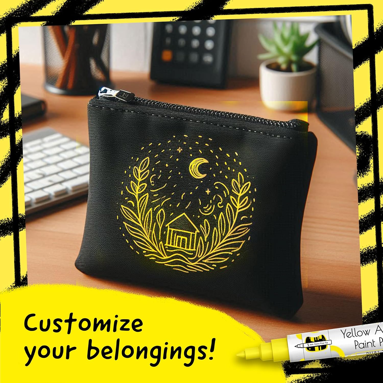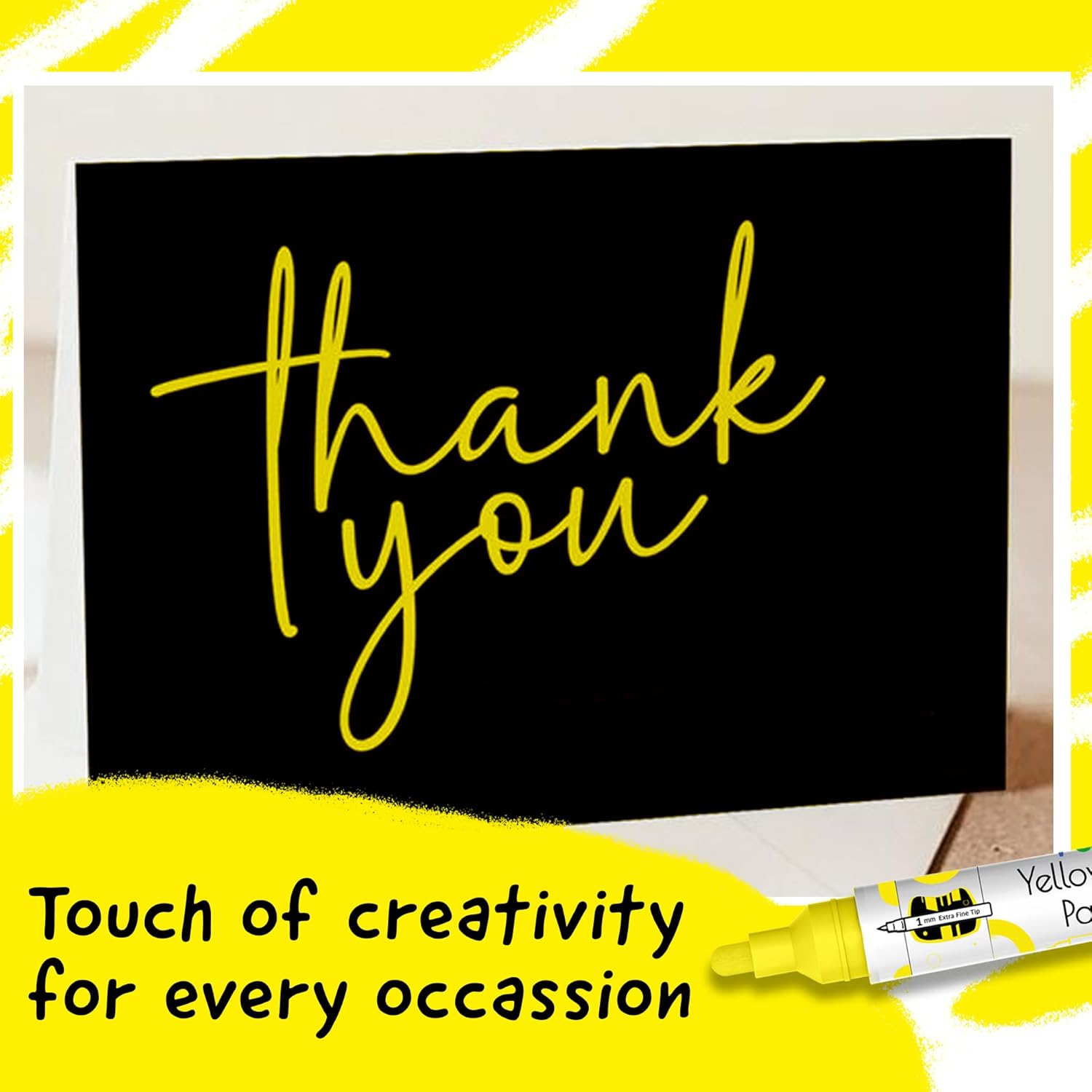 - Yellow Paint Pens Metallic - Highly pigmented, Quick to dry & used as paint markers for canvas, paint markers for wood, or as glass paint markers, rock painting pens, on wine glasses & ceramic paint pen (dishwasher safe ink)