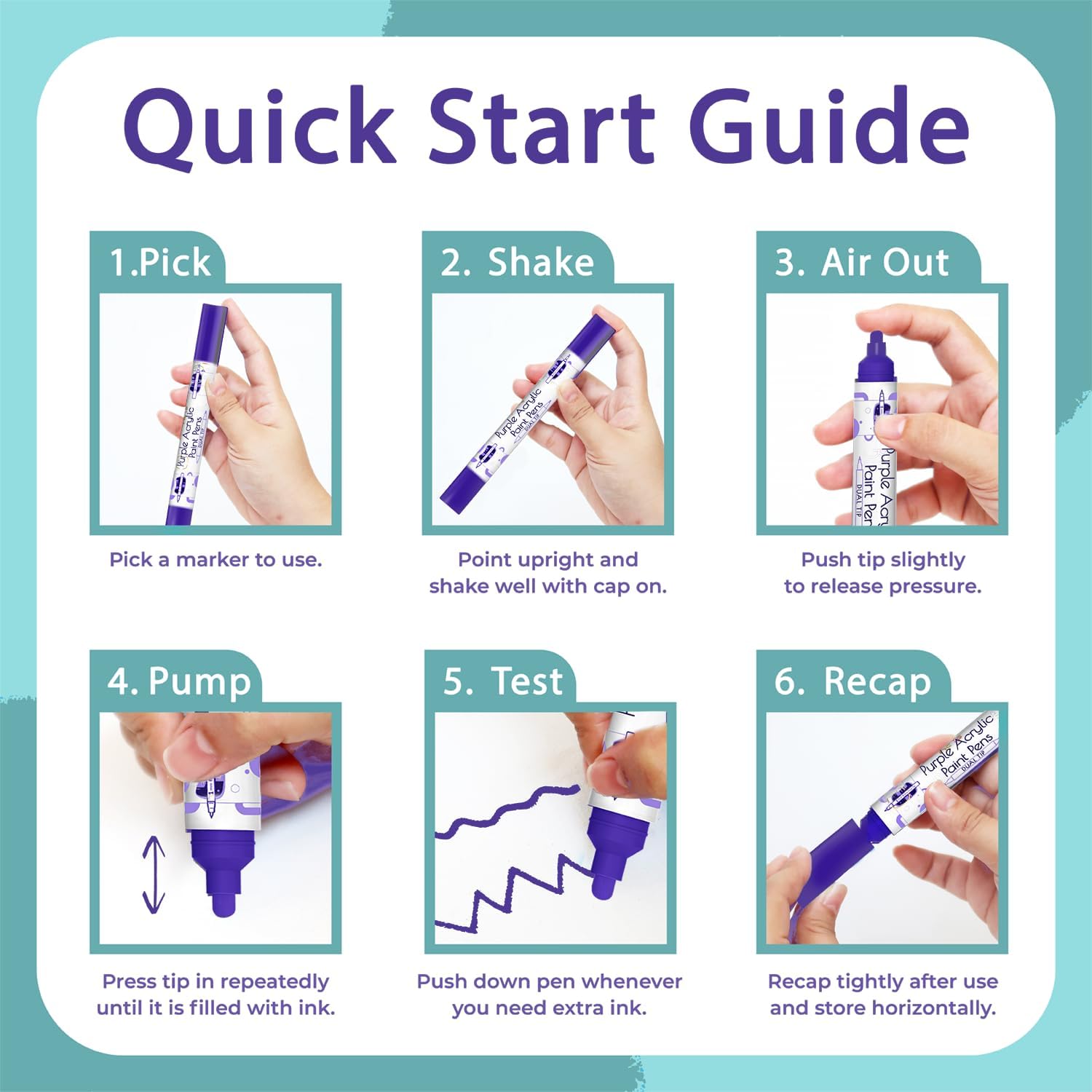- Purple Paint Pens Metallic - Highly pigmented, Quick to dry & used as paint markers for canvas, paint markers for wood, or as glass paint markers, rock painting pens, on wine glasses & ceramic paint pen (dishwasher safe ink)