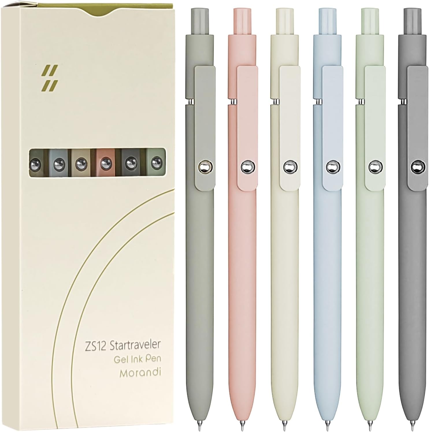 6 Pcs Gel Pens 0.5mm Quick Dry Black Ink Pens Fine Point Smooth Writing Pens, Cute Office and School Supplies Gifts for Women Teacher Students (6 Pcs Morandi Silver)