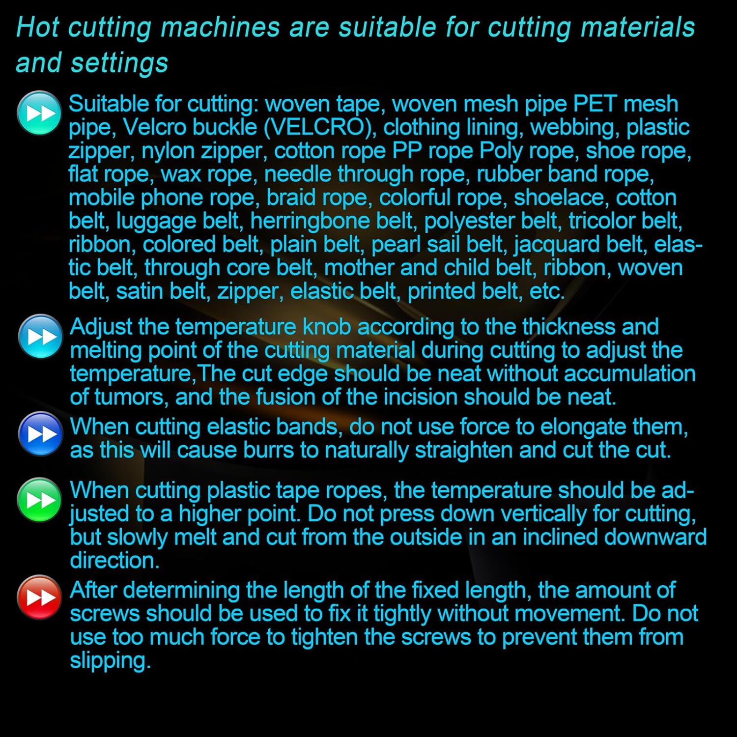 - Specific Uses For Product : Nylon, ribbon, ribbon, melt cut