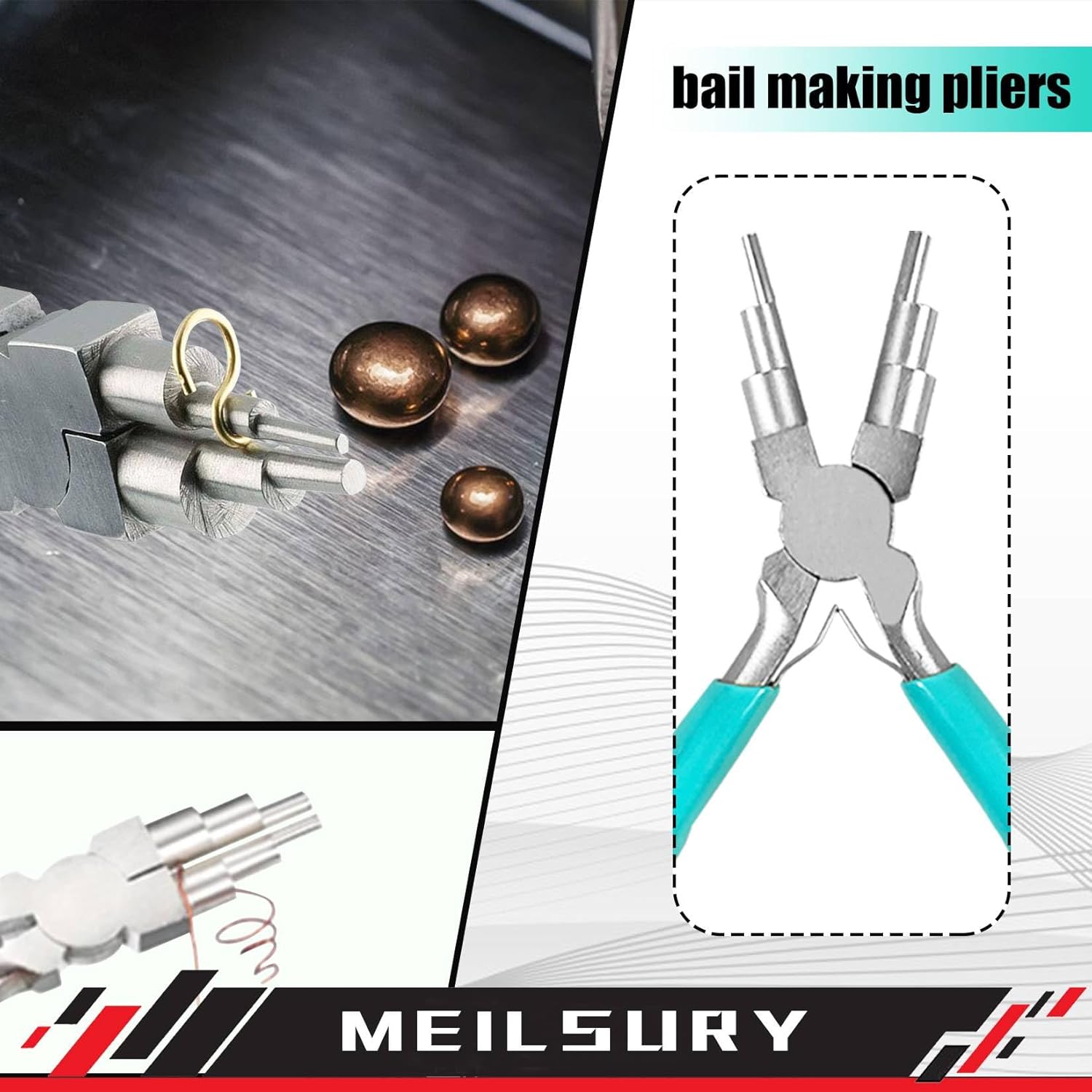 - The set consists of 6-step bail-making pliers, nylon jaw pliers, and wire looping and bending plier.
