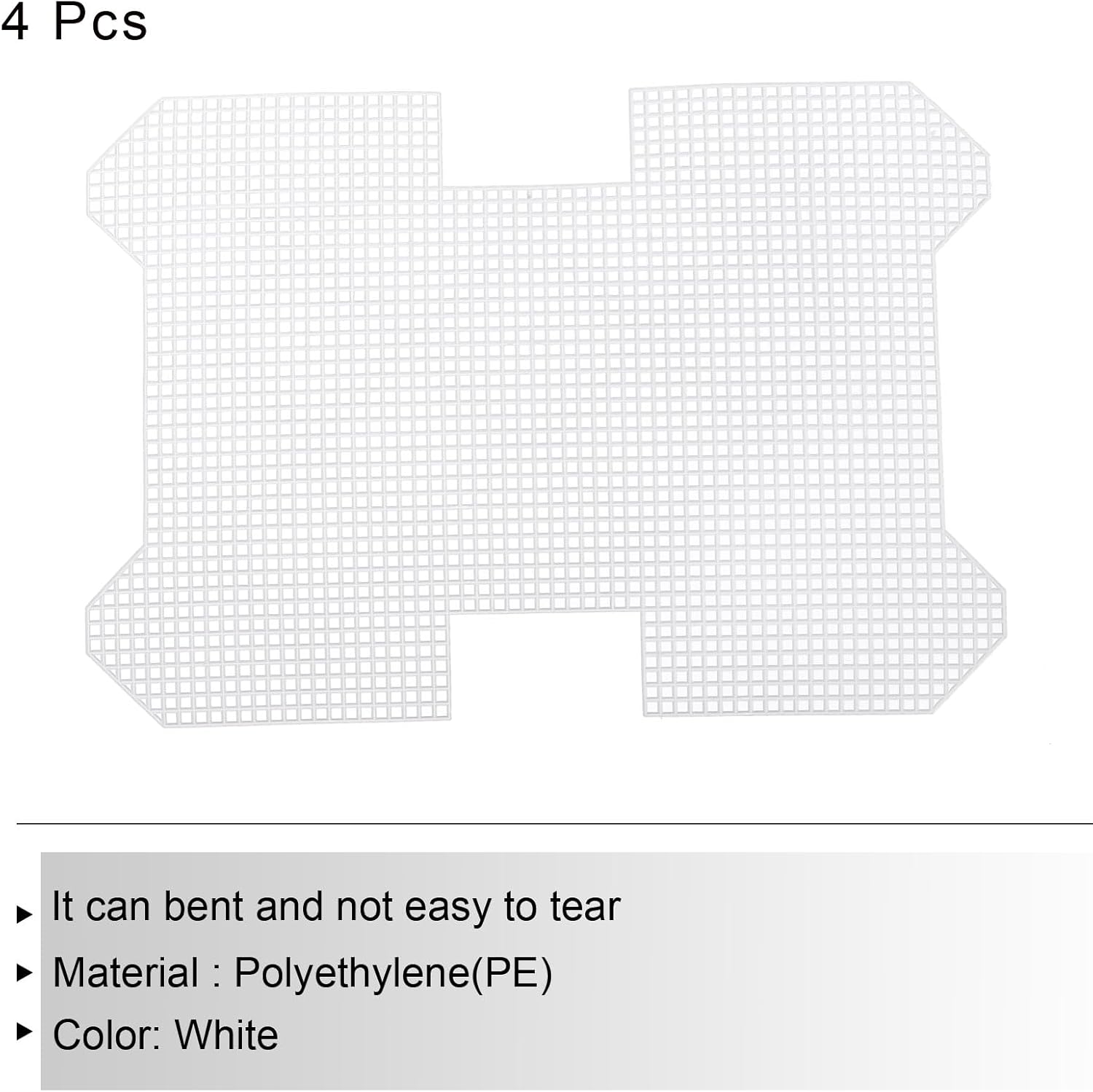 - Package Content: 4Pcs x Plastic Canvas Mesh Sheet; Length: 26.4 cm/ 10.4 inch; Width: 185 mm/ 7 inch; Thickness: 1.5 mm/ 0.06 inch