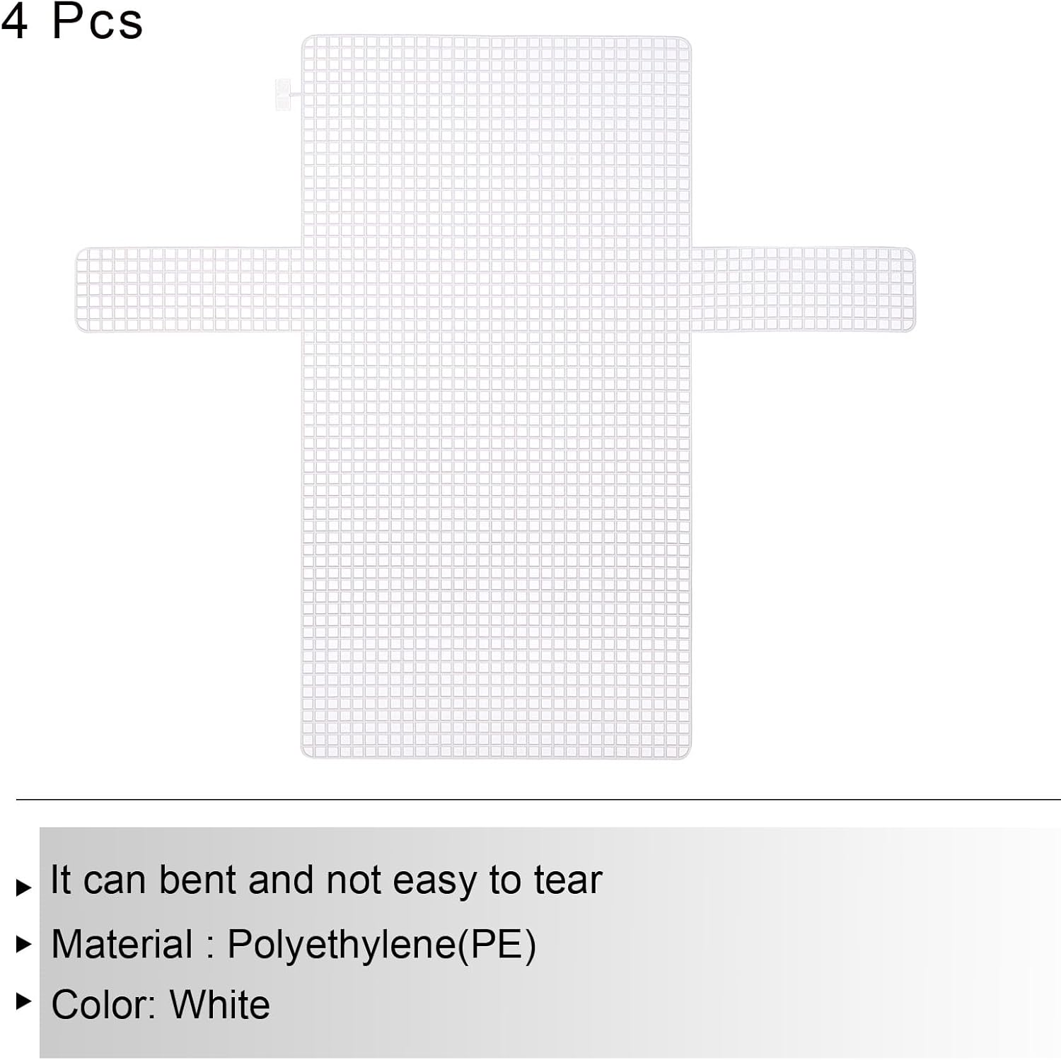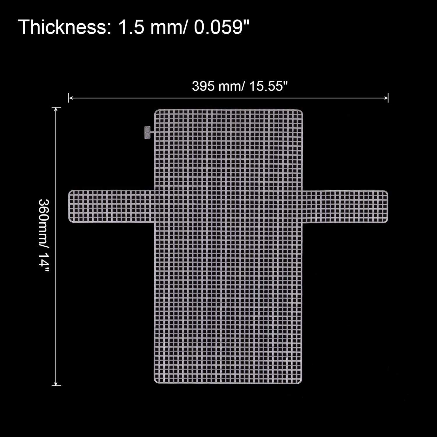 - Package Content: 4Pcs x Plastic Canvas Mesh Sheet; Length: 36 cm/ 14 inch; Width: 395 mm/ 15.5 inch; Thickness: 1.5 mm/ 0.06 inch