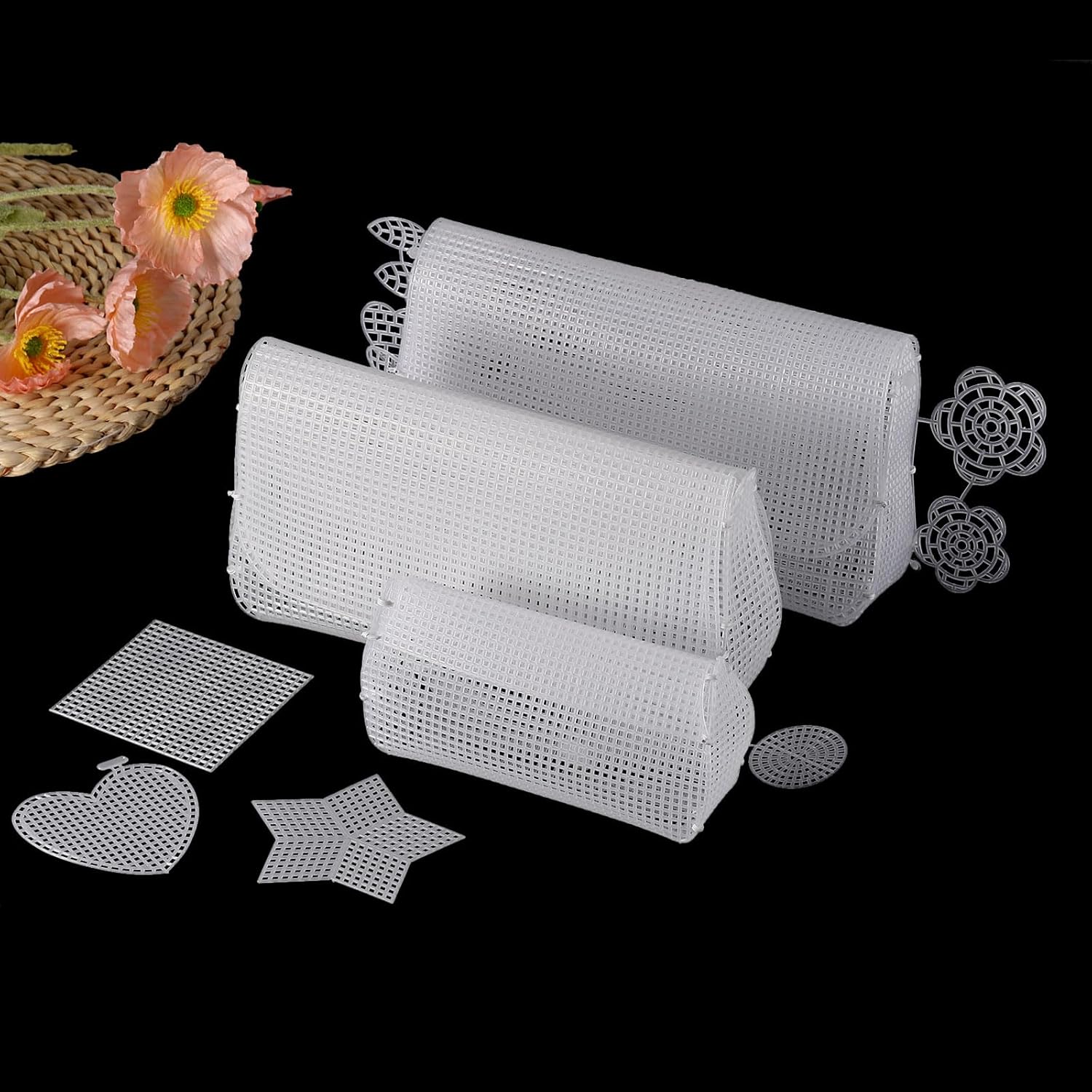 - The plastic canvas sheets are made of polyethylene(PE) material which has a variety of excellent properties, such as soft, lightweight, wear-resistant, and has a certain degree of elasticity.
