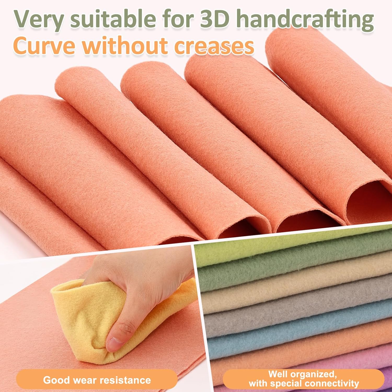 - 【High Quality】:Our felt fabric are made of polyester fiber and fade resistant. They be cut cleanly and opaque in light, it can withstand extended use without wearing or tearing. or crumbling on the edge. Holding its shape well and easy to cut, fold, stitch, iron, sewing and staple for your needs.