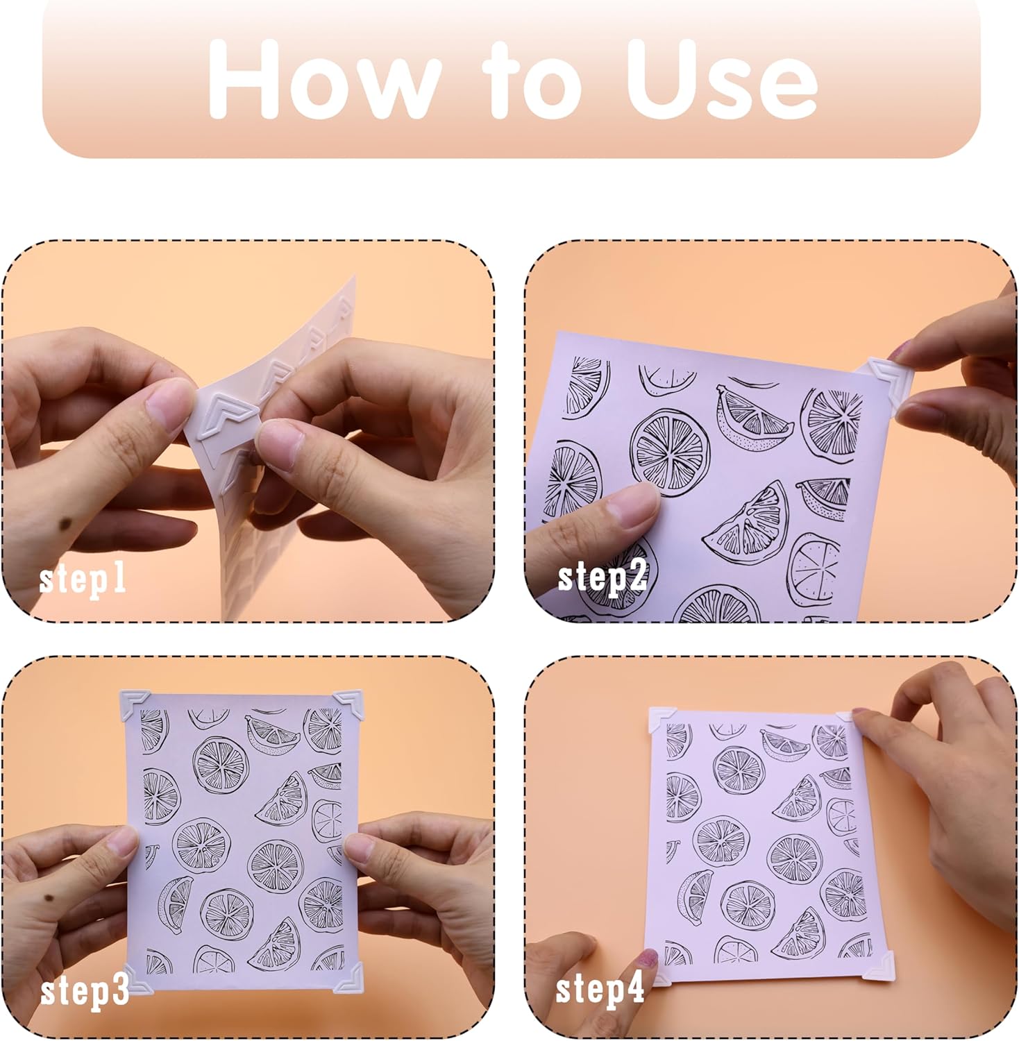 - Easy to Use: Simply peel the scrapbook photo corners off the sheets and apply directly to album pages, or slip over corner of a photo and position on album page. The self-adhesive photo sticky corners will not cover up your photos to show complete pictures